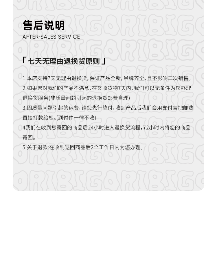 【售后说明】七天无理由退换货原则
