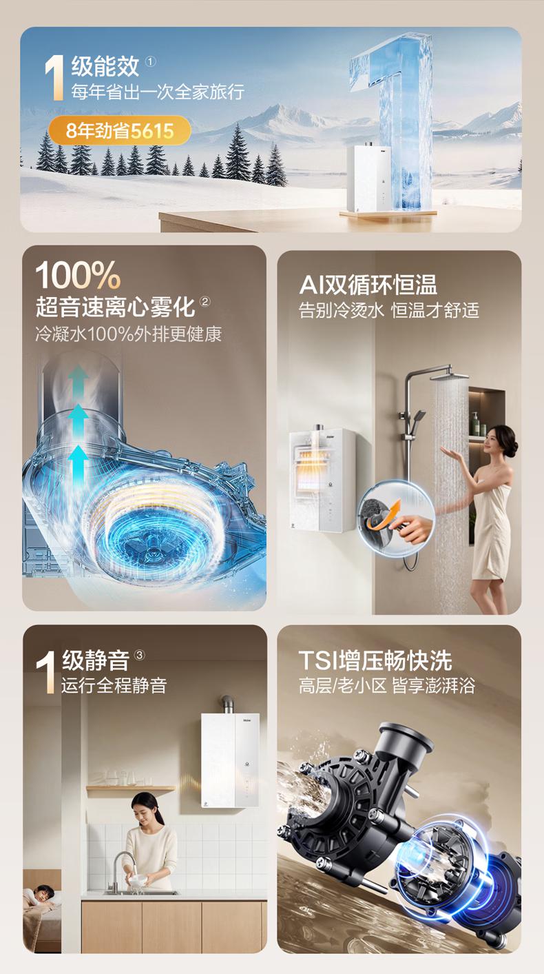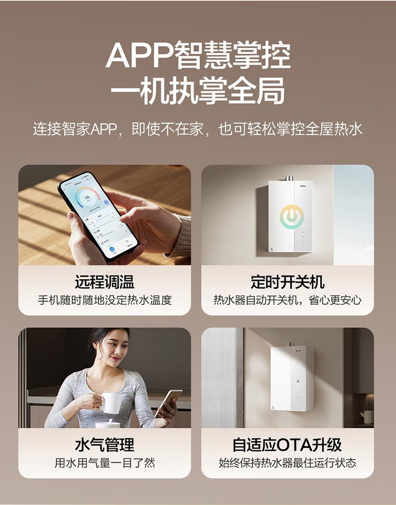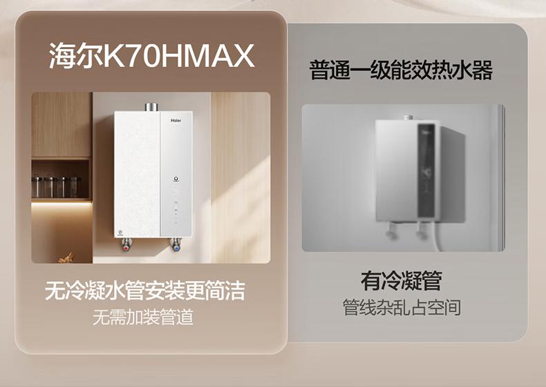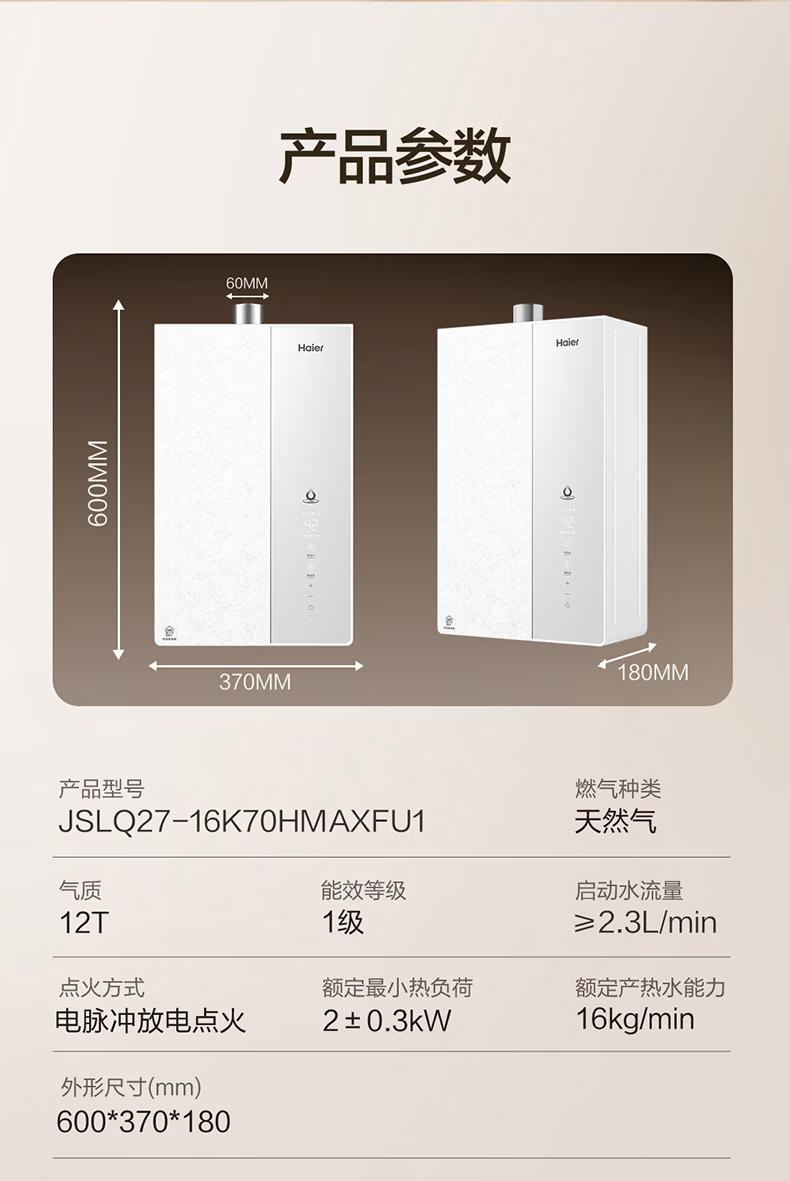 海尔(Haier)麦浪套系燃气热水器K70H恒温增压零冷水燃气热水器天然气家用超一级能效 16L 下置风机K70HMAX【恒温增压】