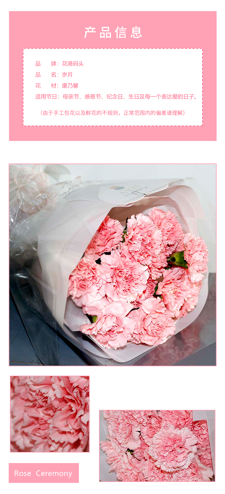 岁月丨19枝粉色康乃馨花束