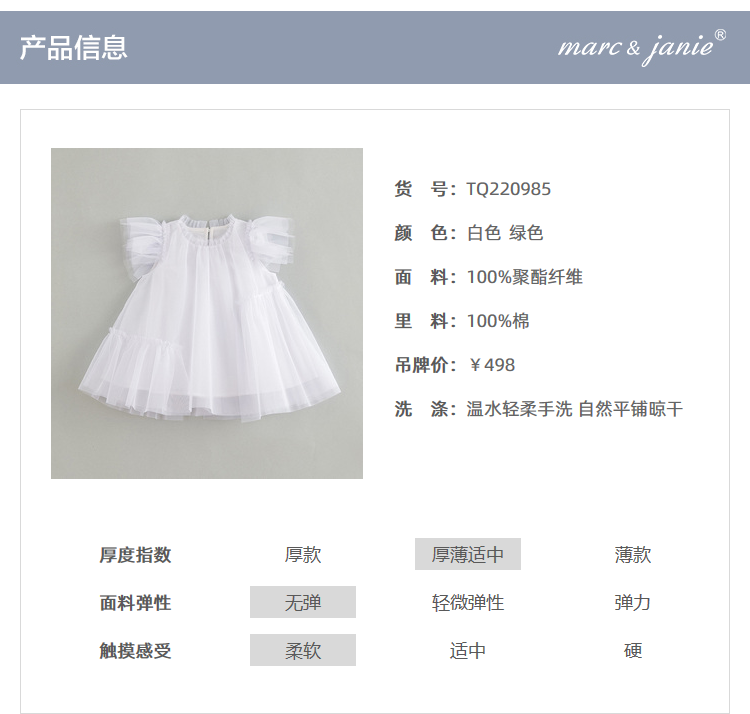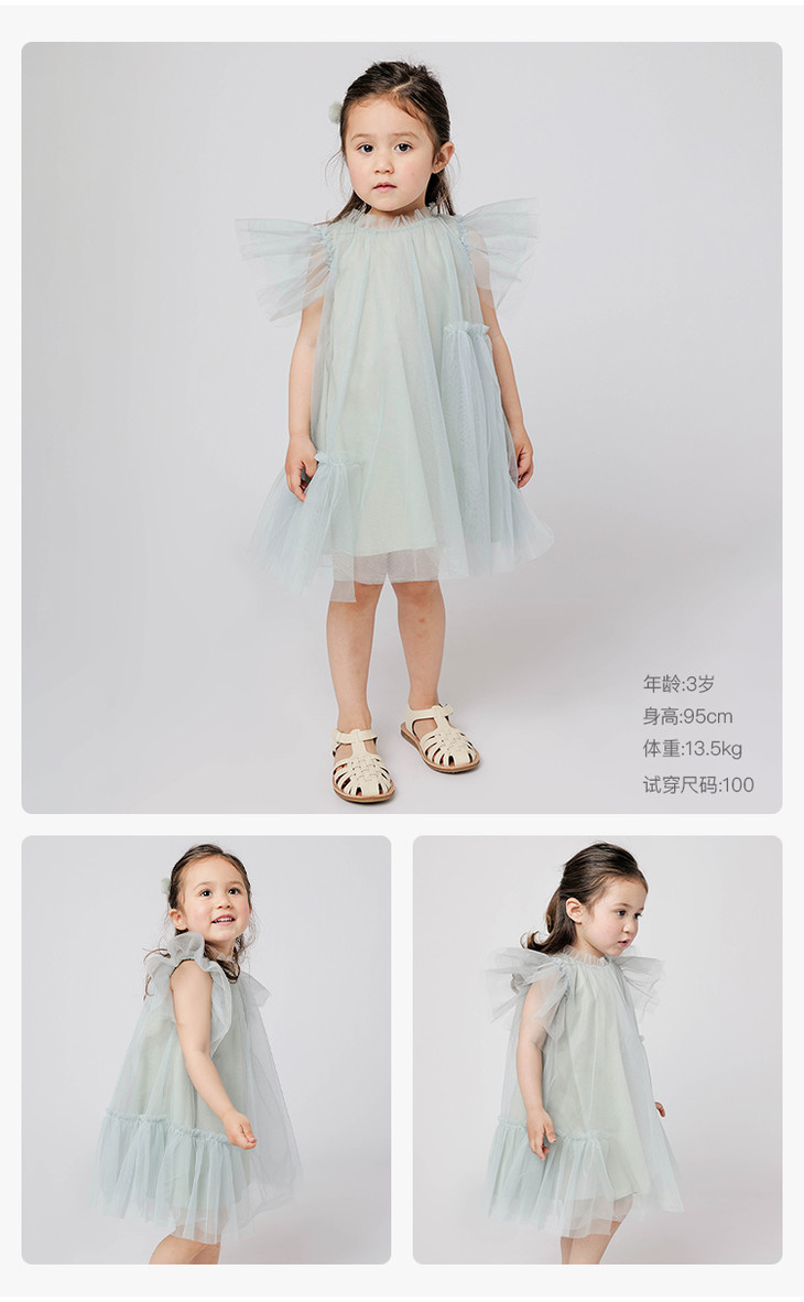 马克珍妮夏装新款 女童网纱蝴蝶袖蓬蓬裙连衣裙 儿童裙子220985