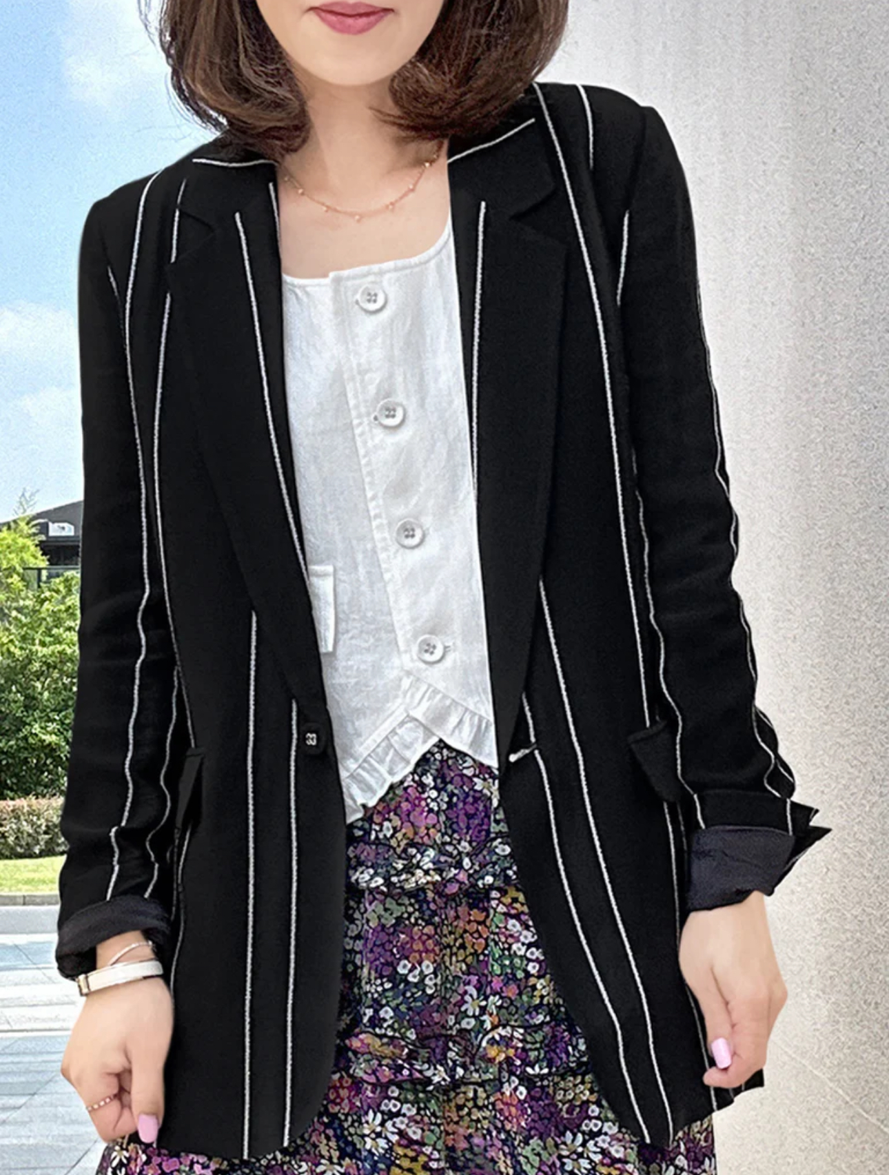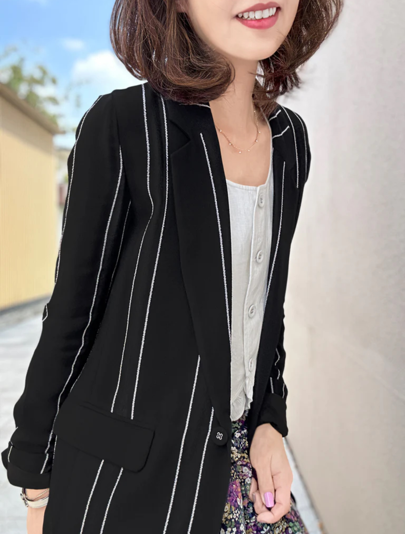 TYNVIE 翻盖插袋修身西装 - 黑条纹