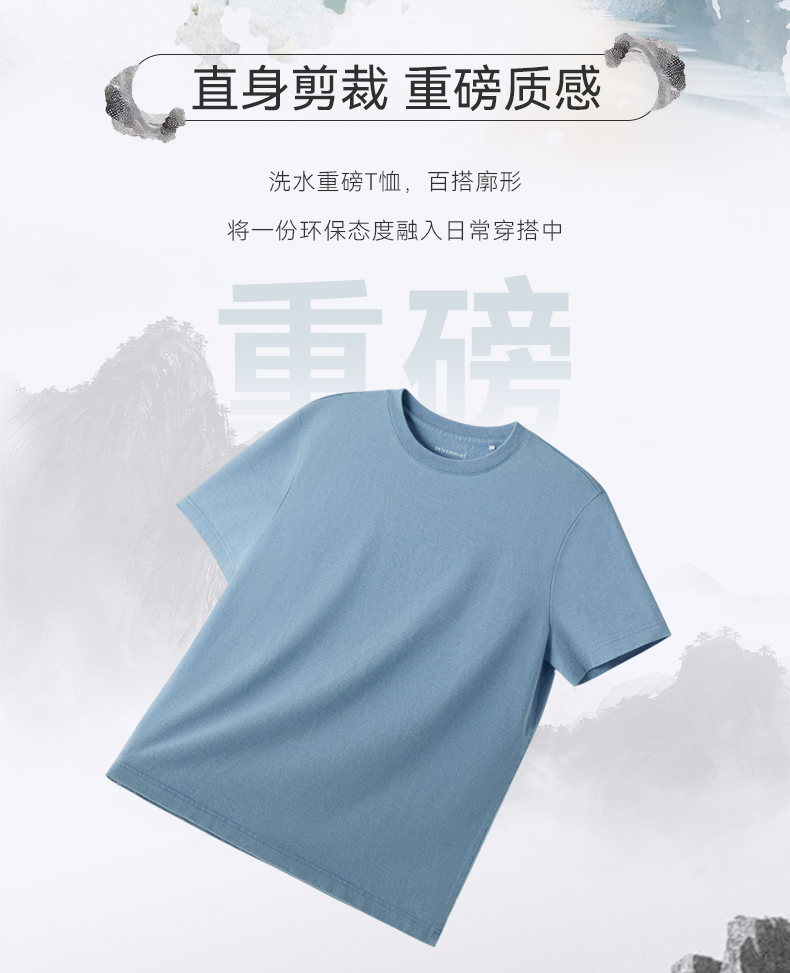 十如仕针织圆领天然染短袖T恤-日月山河特别版-T02-C1