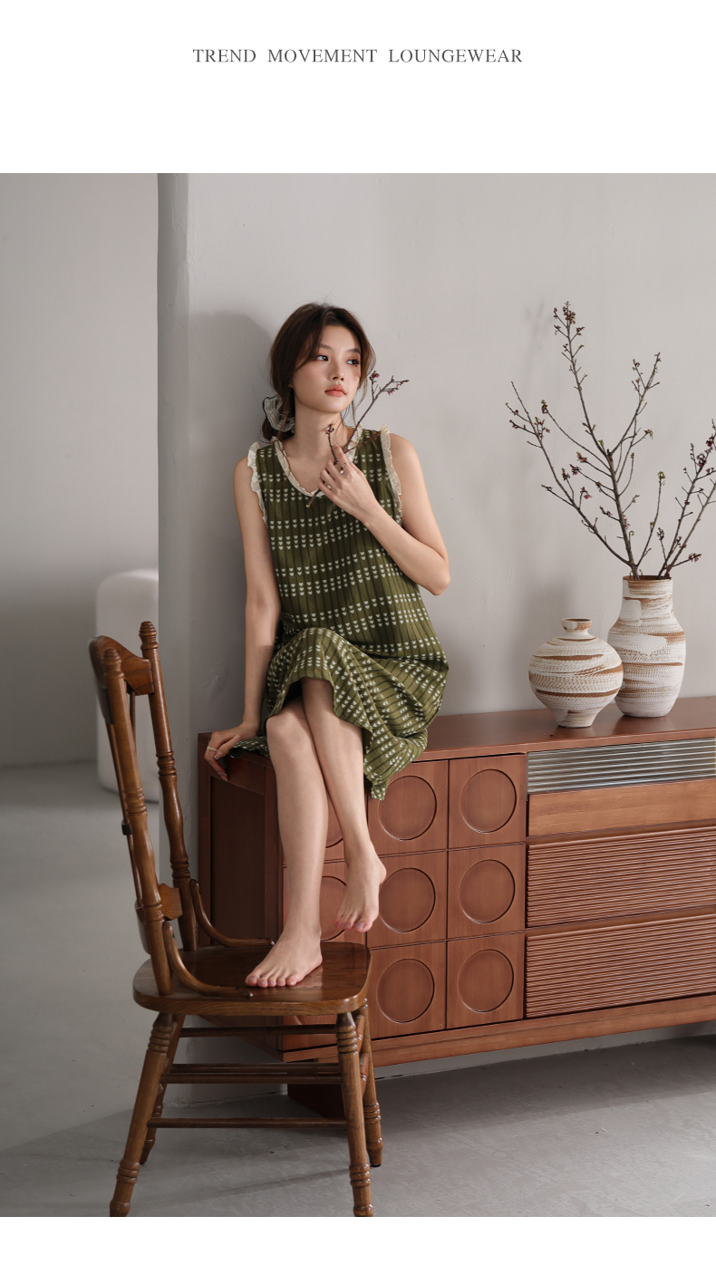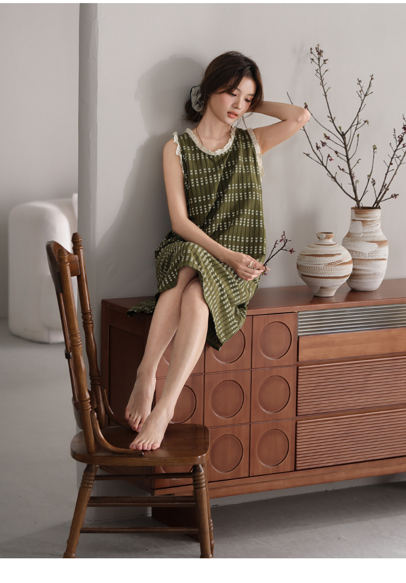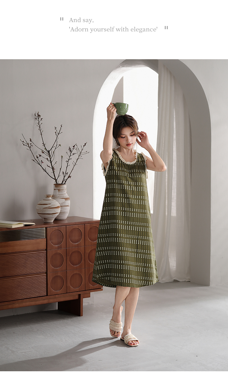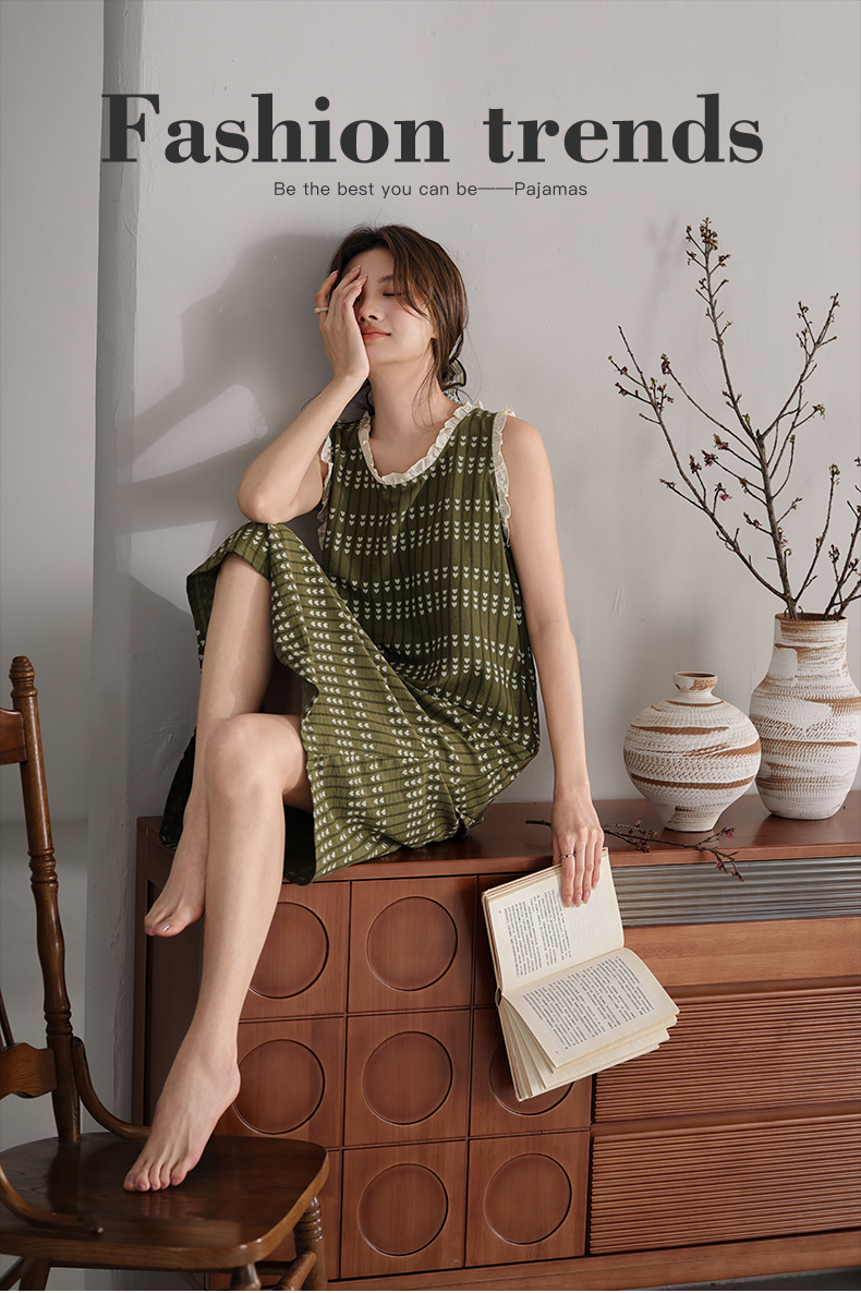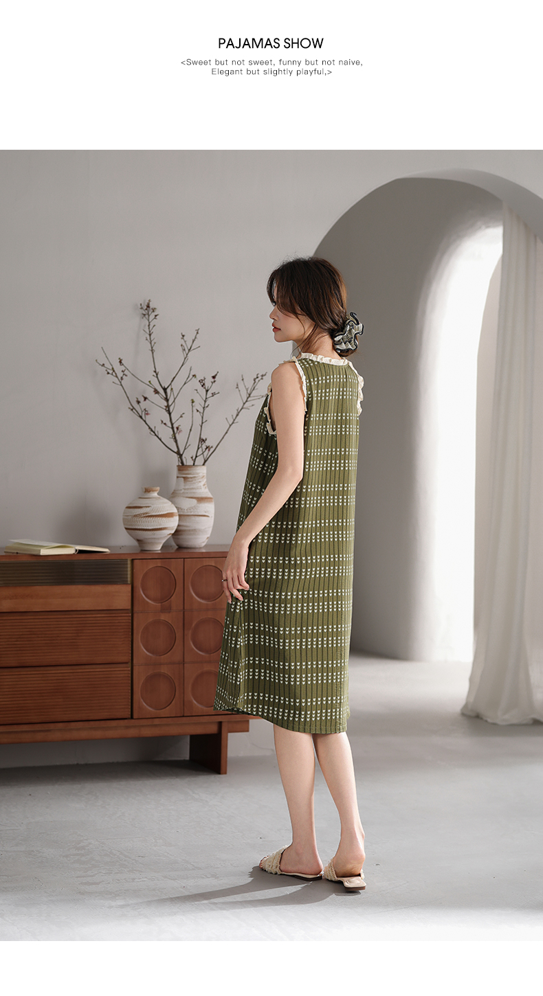 可人儿小众设计师新款泡泡绵女士睡衣夏季少女睡裙可外穿家居服