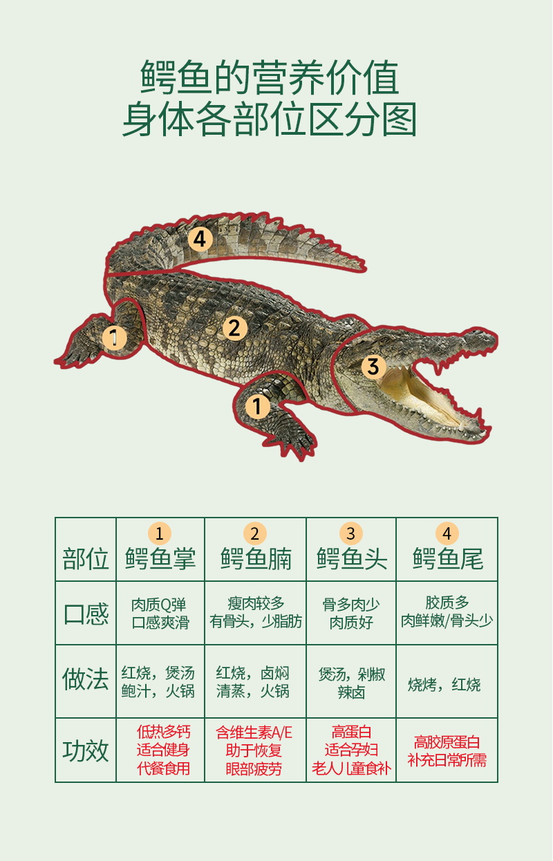 正大鳄鱼肉498套餐(尾中切片400g*2+带骨切丁肉400g*2+鳄鱼掌800g*1)