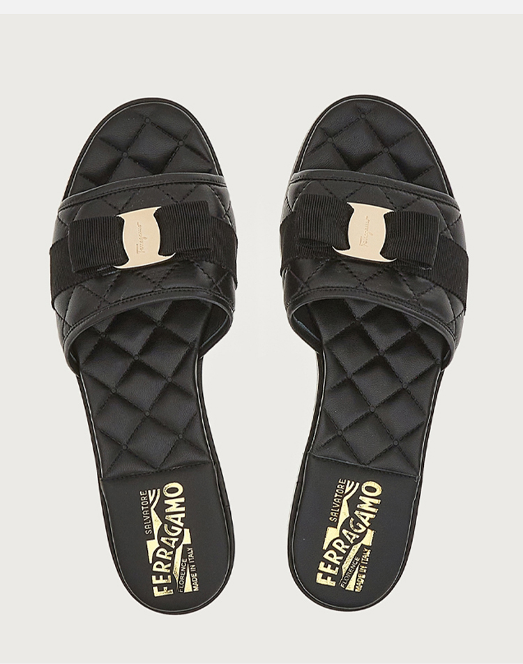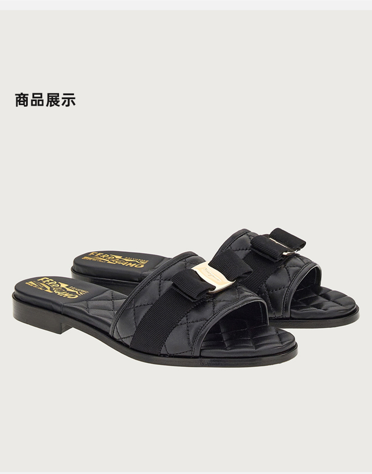 FERRAGAMO 菲拉格慕 女士VARA蝴蝶结休闲拖鞋 黑色 753739