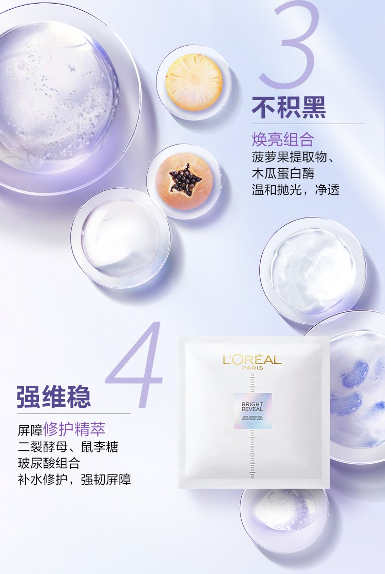 欧莱雅臻白晶透淡斑沁白精华面膜5pc