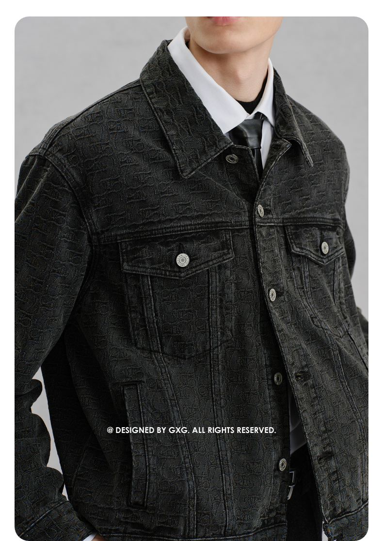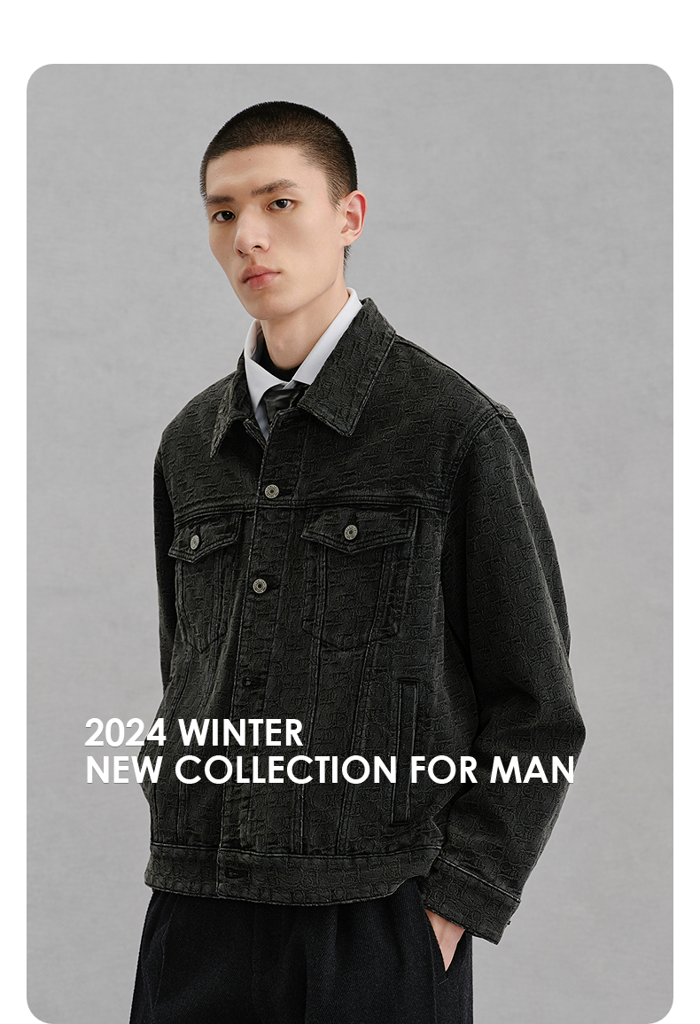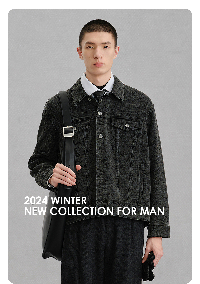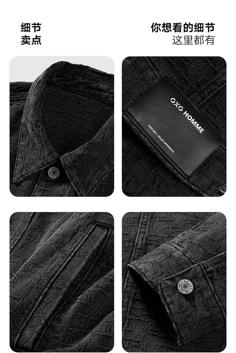 GXG男装 暗纹提花牛仔夹克通勤外套 24冬热卖G24XE84005