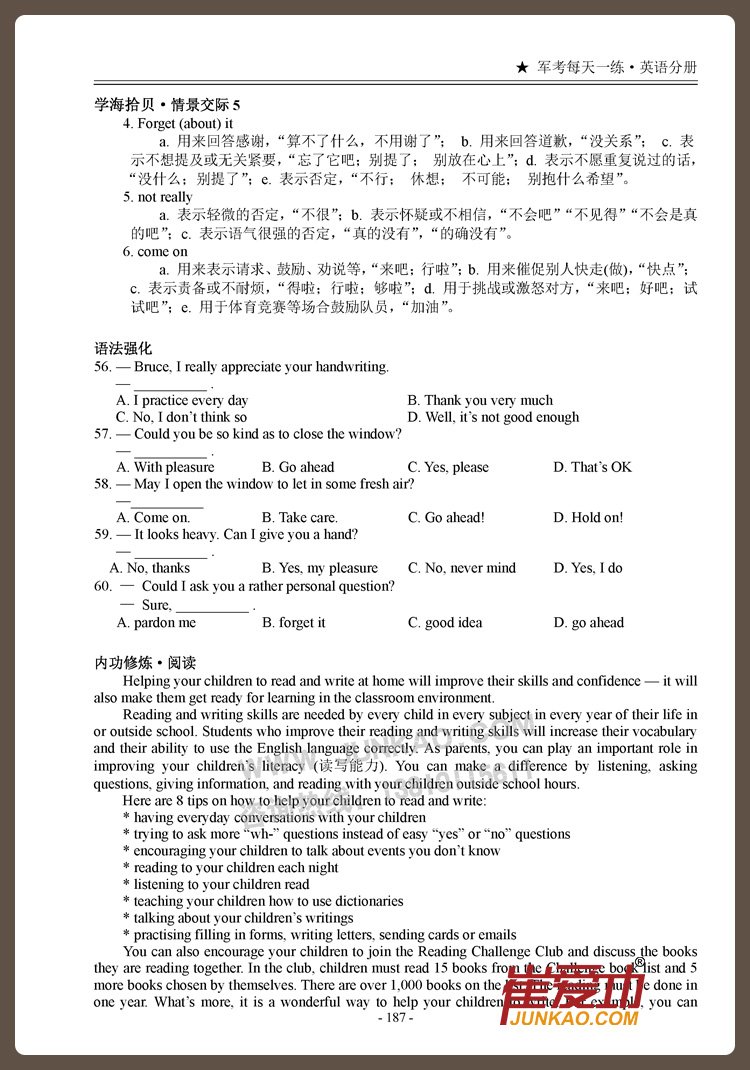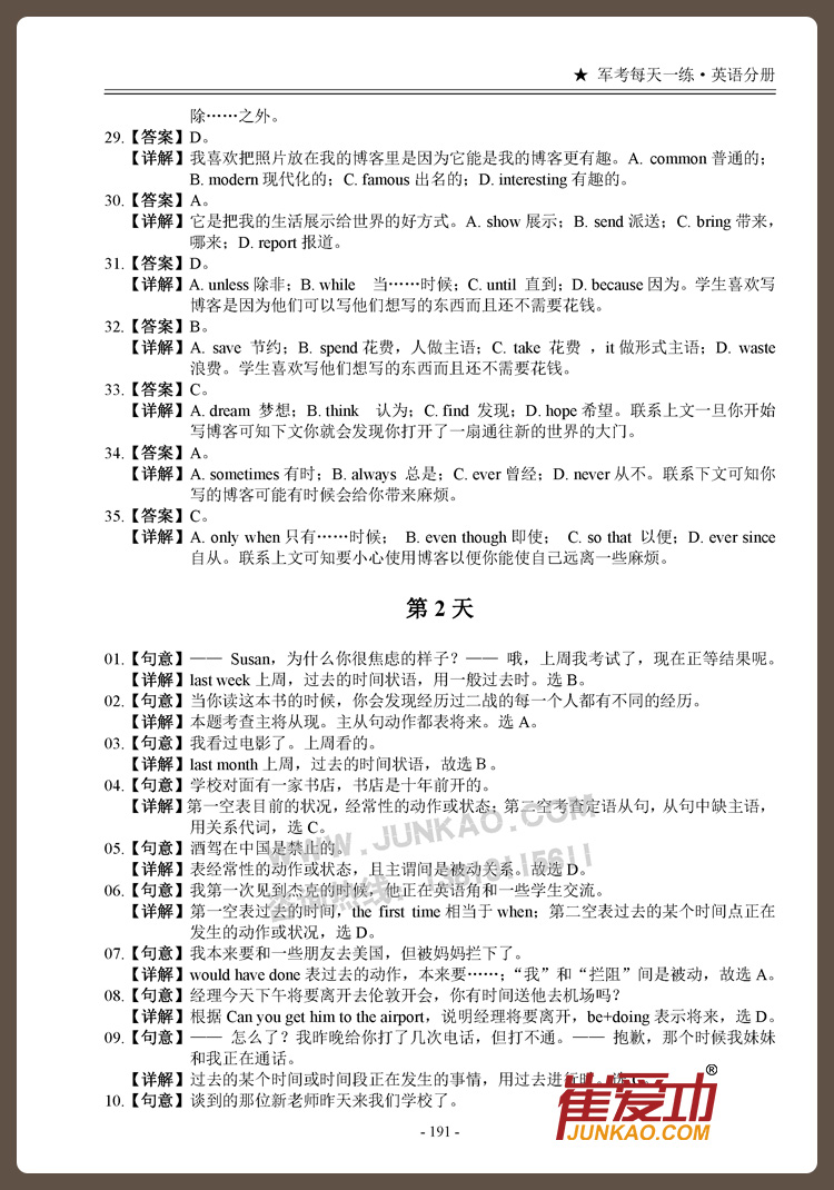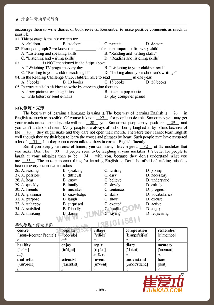 阅读、完形是分数大户,也是不易突击、短期见效的部分;所以我们在编写之初就已经确定了每天一题的思路, 即“内功修炼”(完形和阅读为主),能力的培养更多的是一种积累、沉淀、消化和领悟。