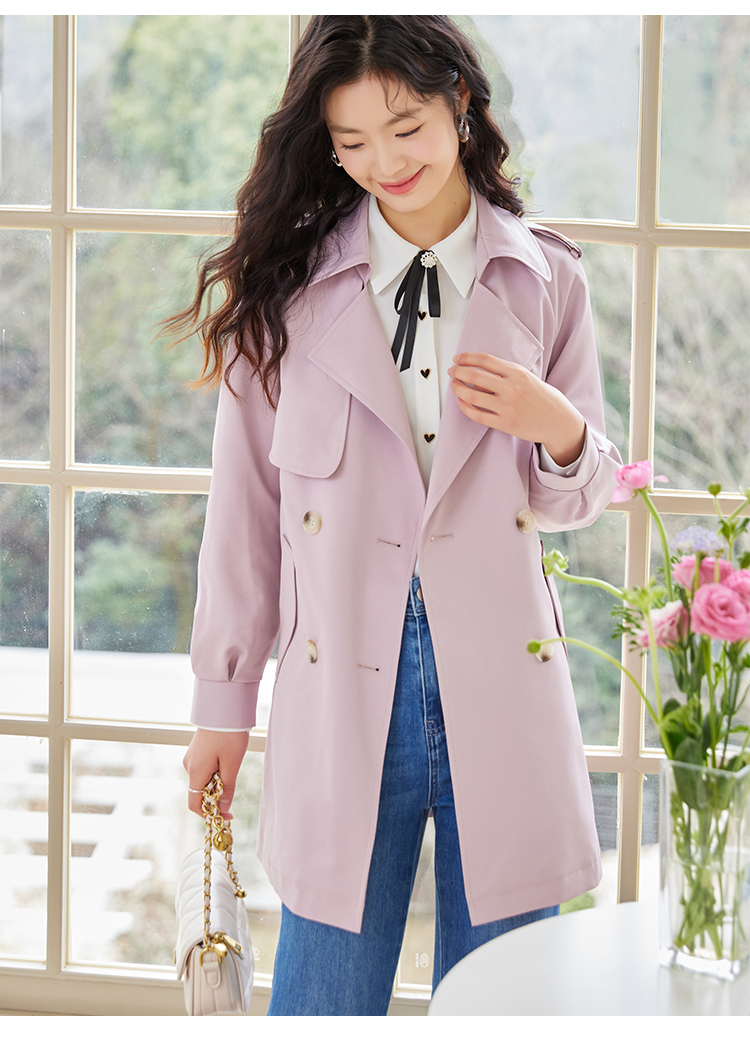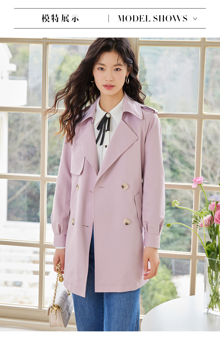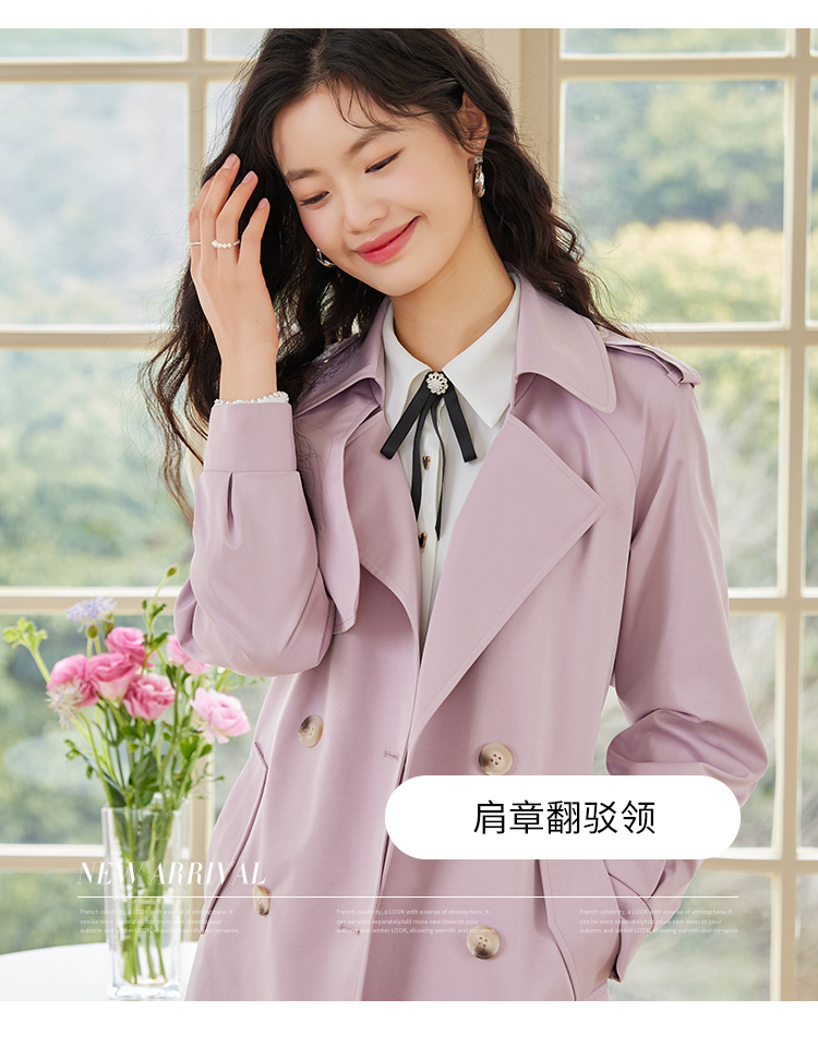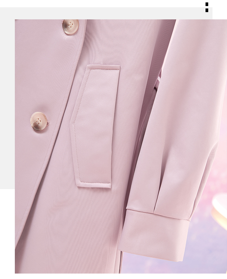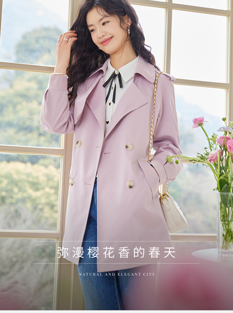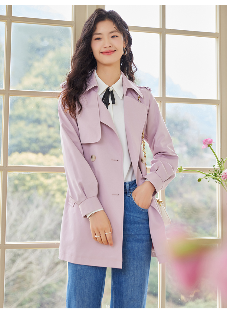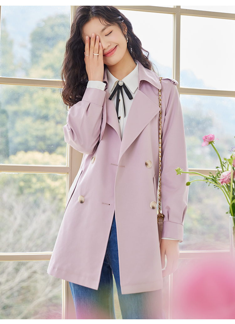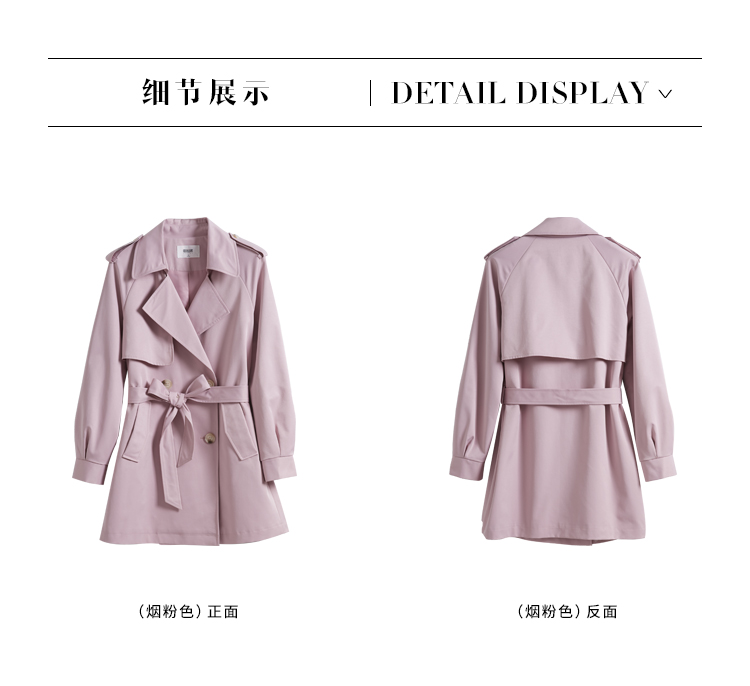 【专属特价】熙世界粉色风衣外套女中长款2025春秋新款气质高端chic英伦风大衣