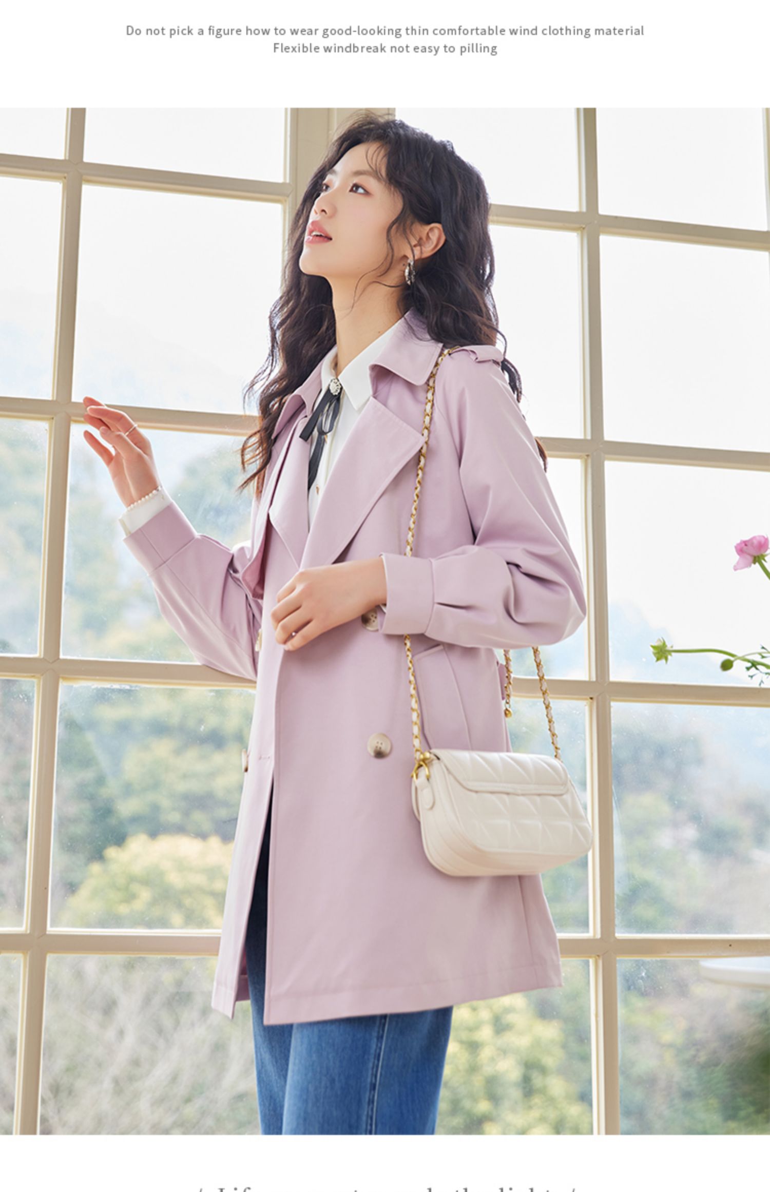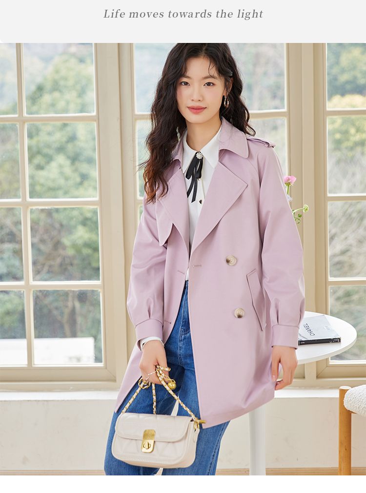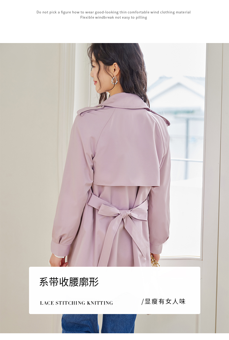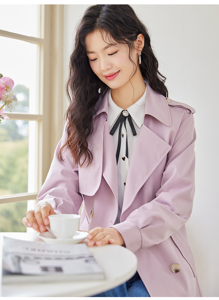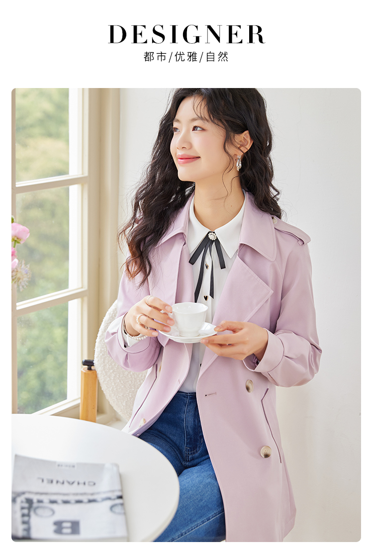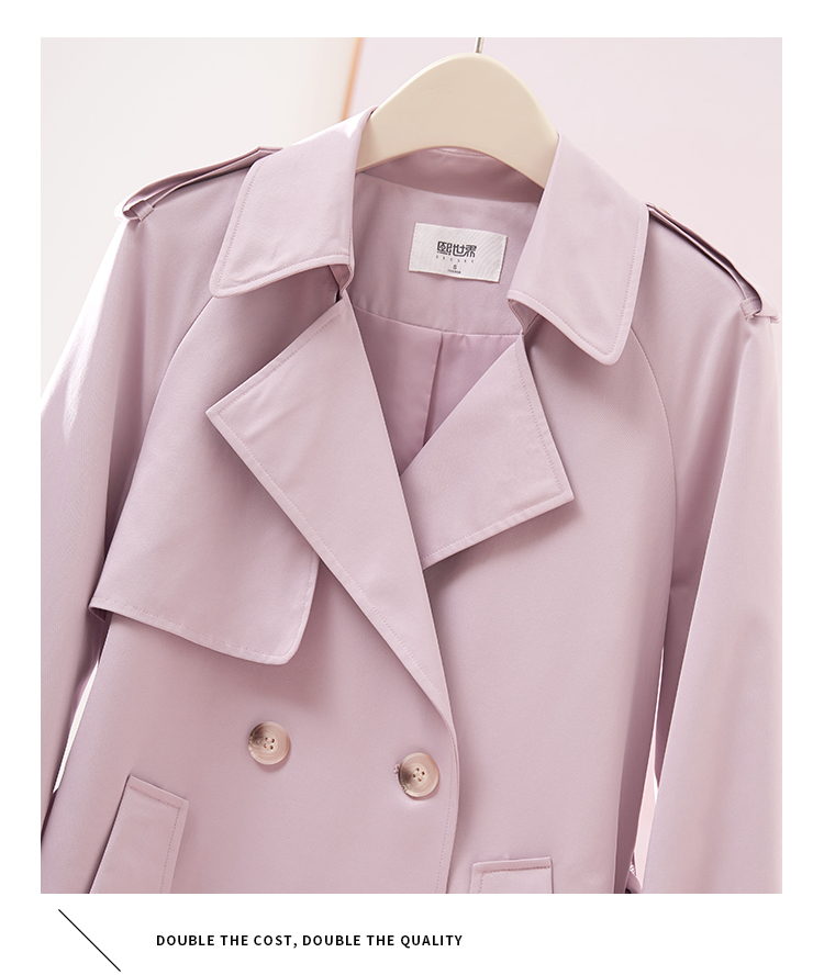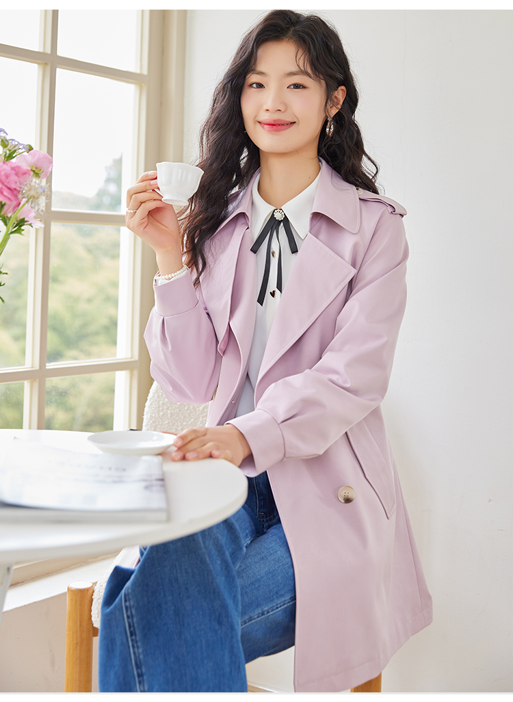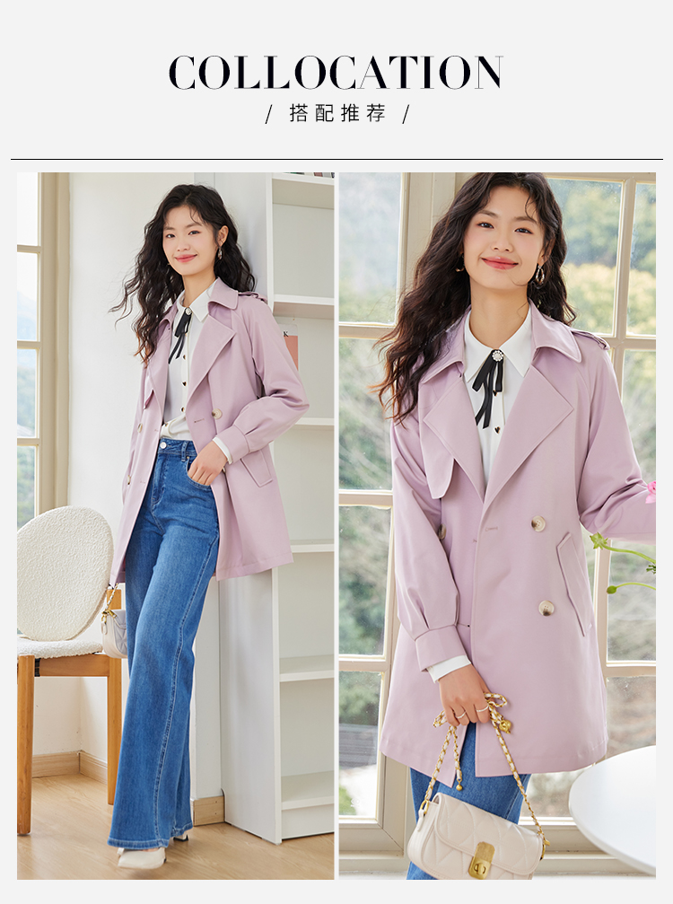 【专属特价】熙世界粉色风衣外套女中长款2025春秋新款气质高端chic英伦风大衣