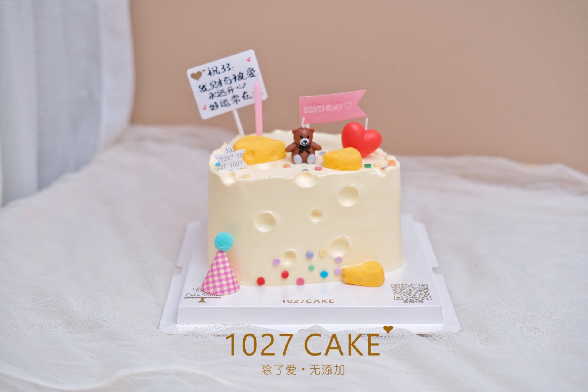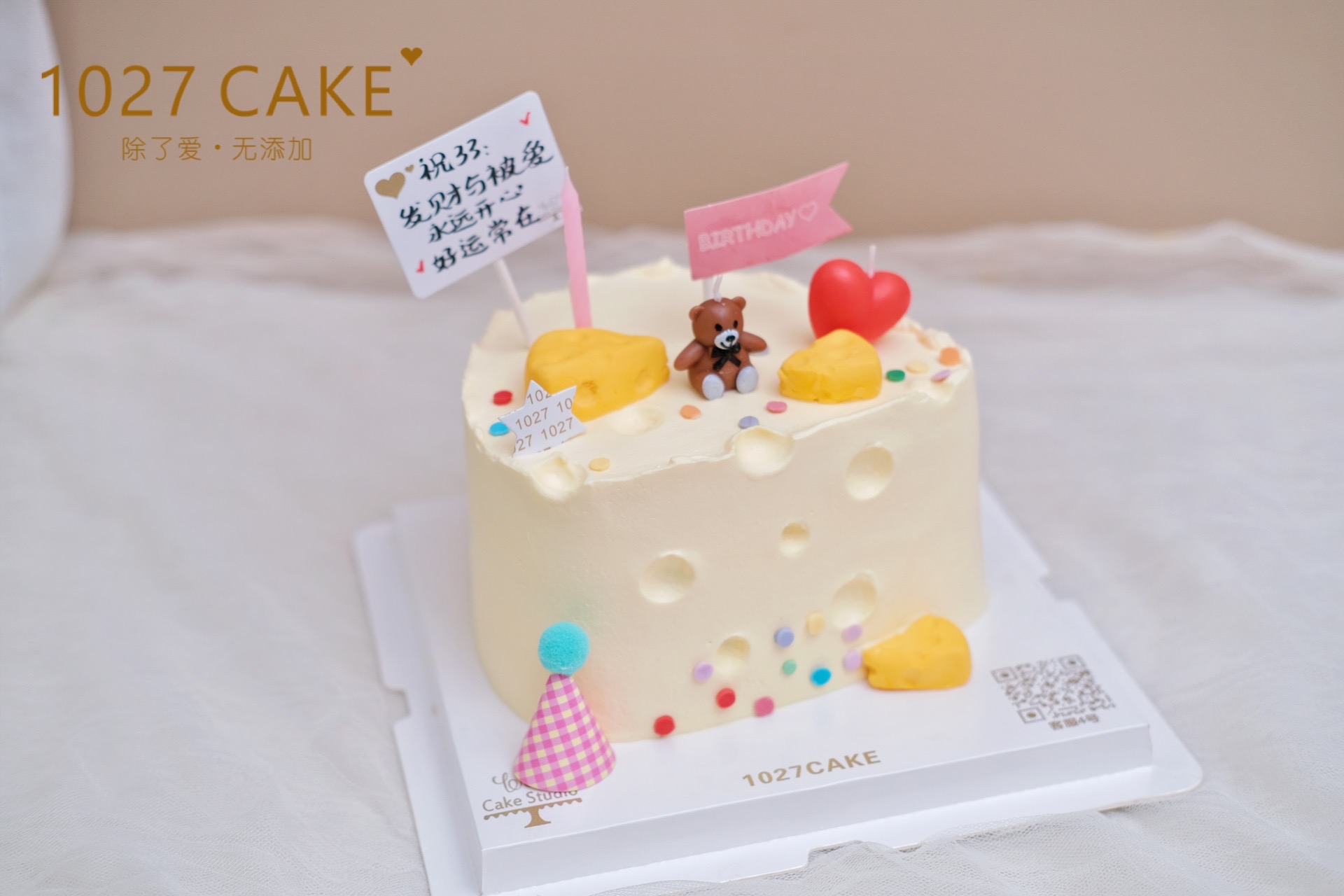 1027CAKE创立于2015年,一路以来,秉承除了爱,无添加的初心,甄选食材,专注研发,坚持最初的那颗心,只想让甜蜜蔓延。