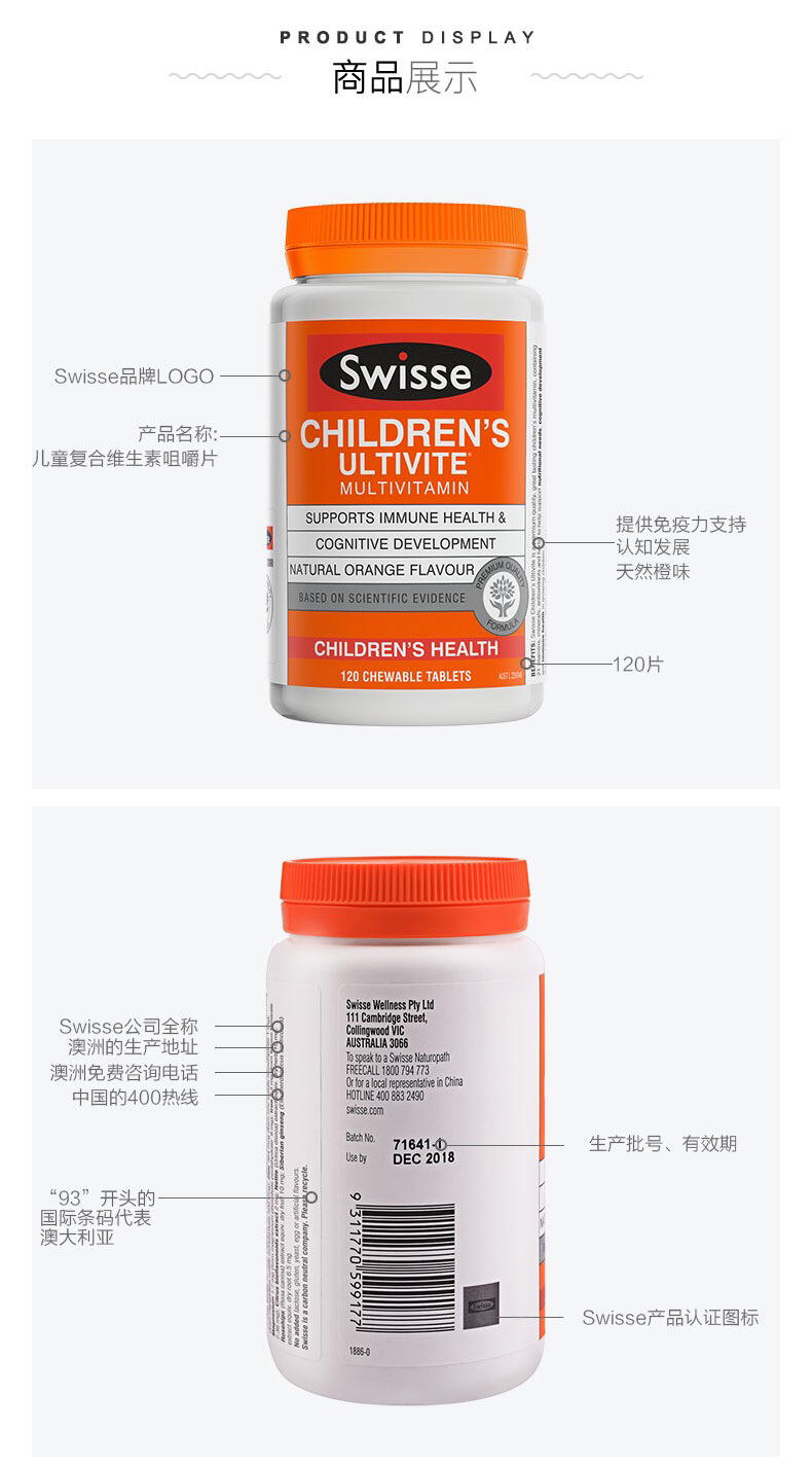 Swisse儿童复合维生素咀嚼片120片-会员8折