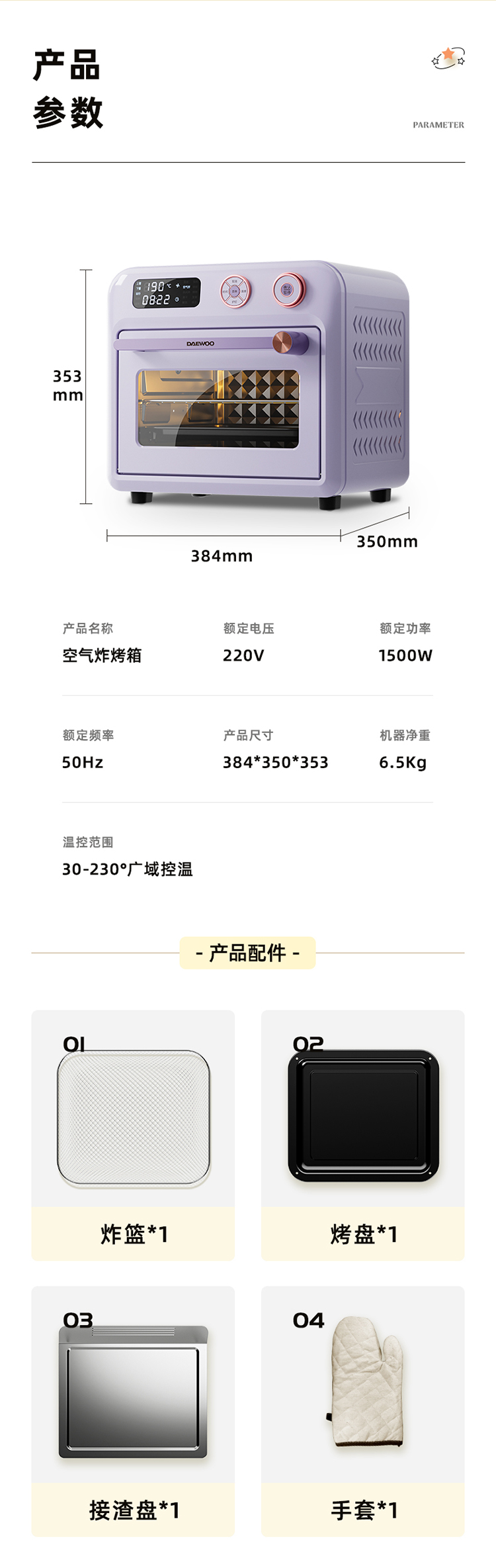 大宇 空气炸锅家用18L可视新款多功能大容量智能电炸锅烤箱一体机