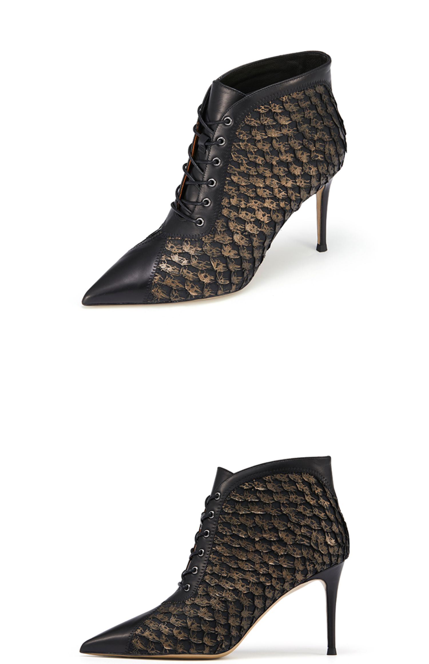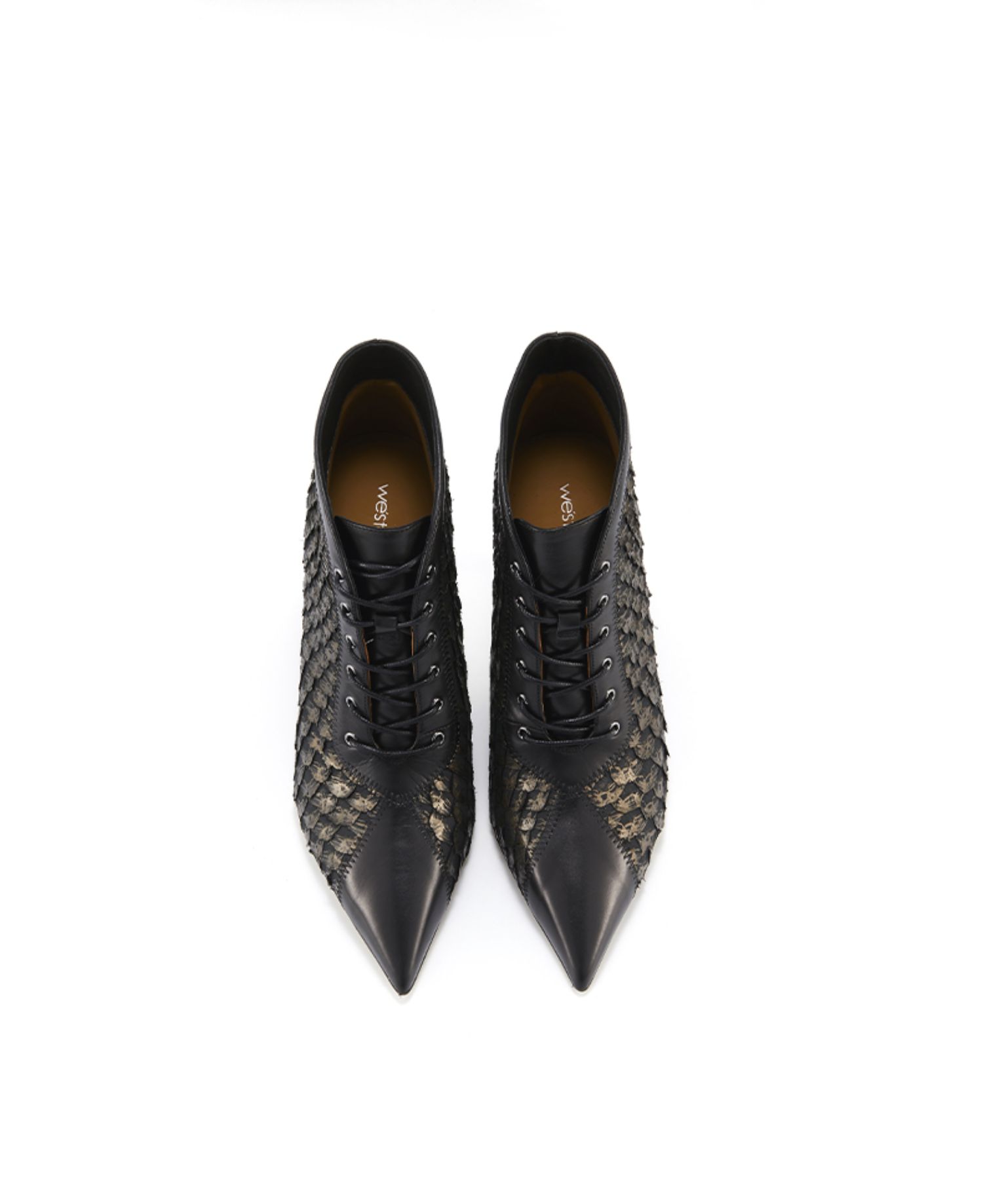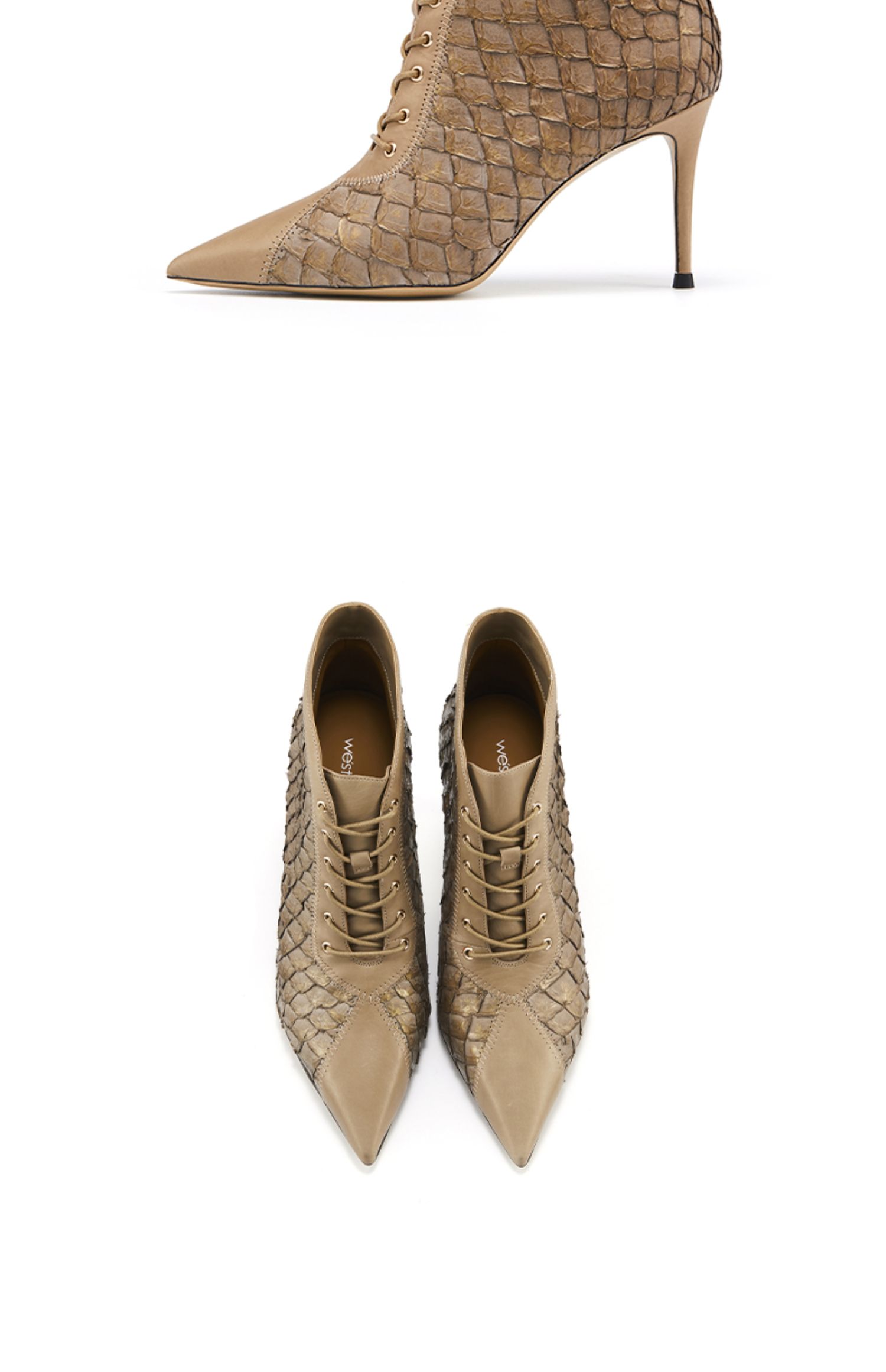 westory2021秋季新款细跟高跟短靴系带鱼鳞纹时装靴W21DS80901