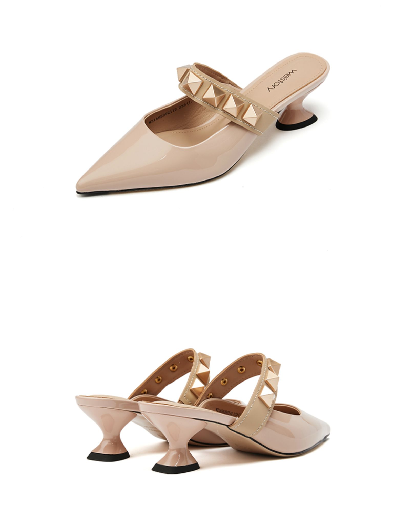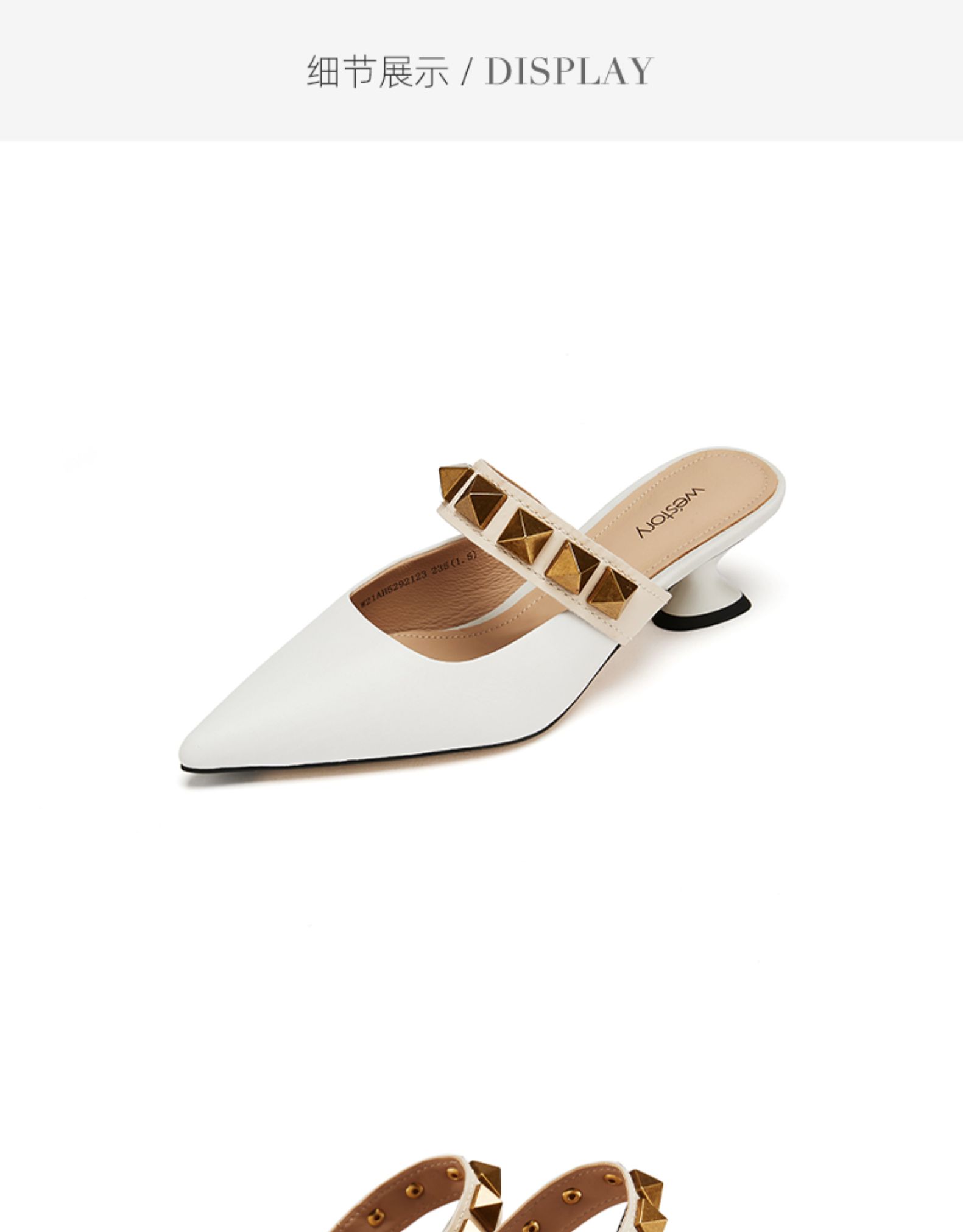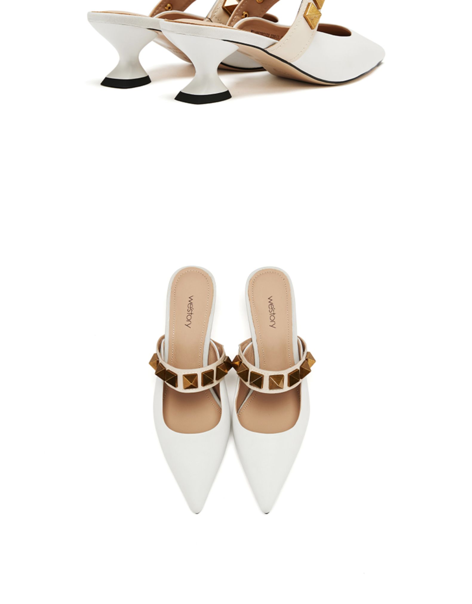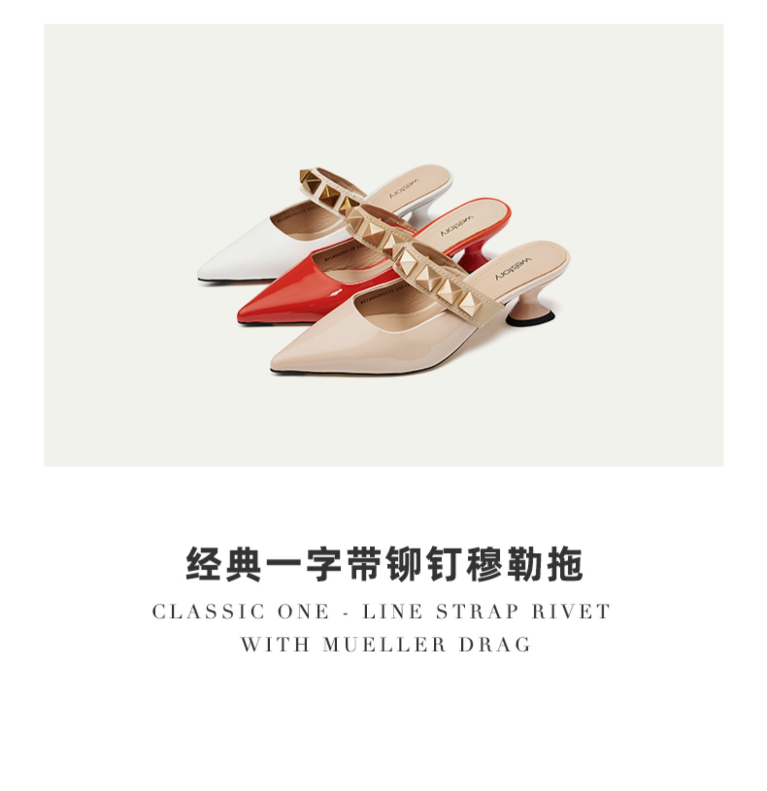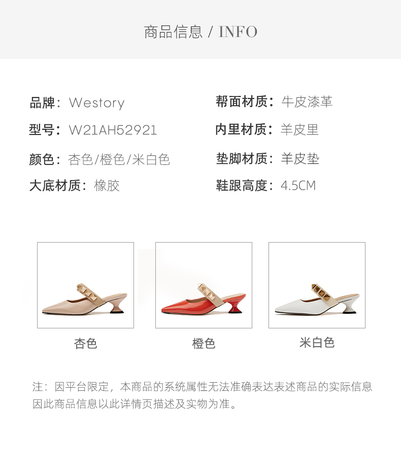 westory女鞋2021夏季新款铆钉穆勒拖一字带凉鞋外穿W21AH52921
