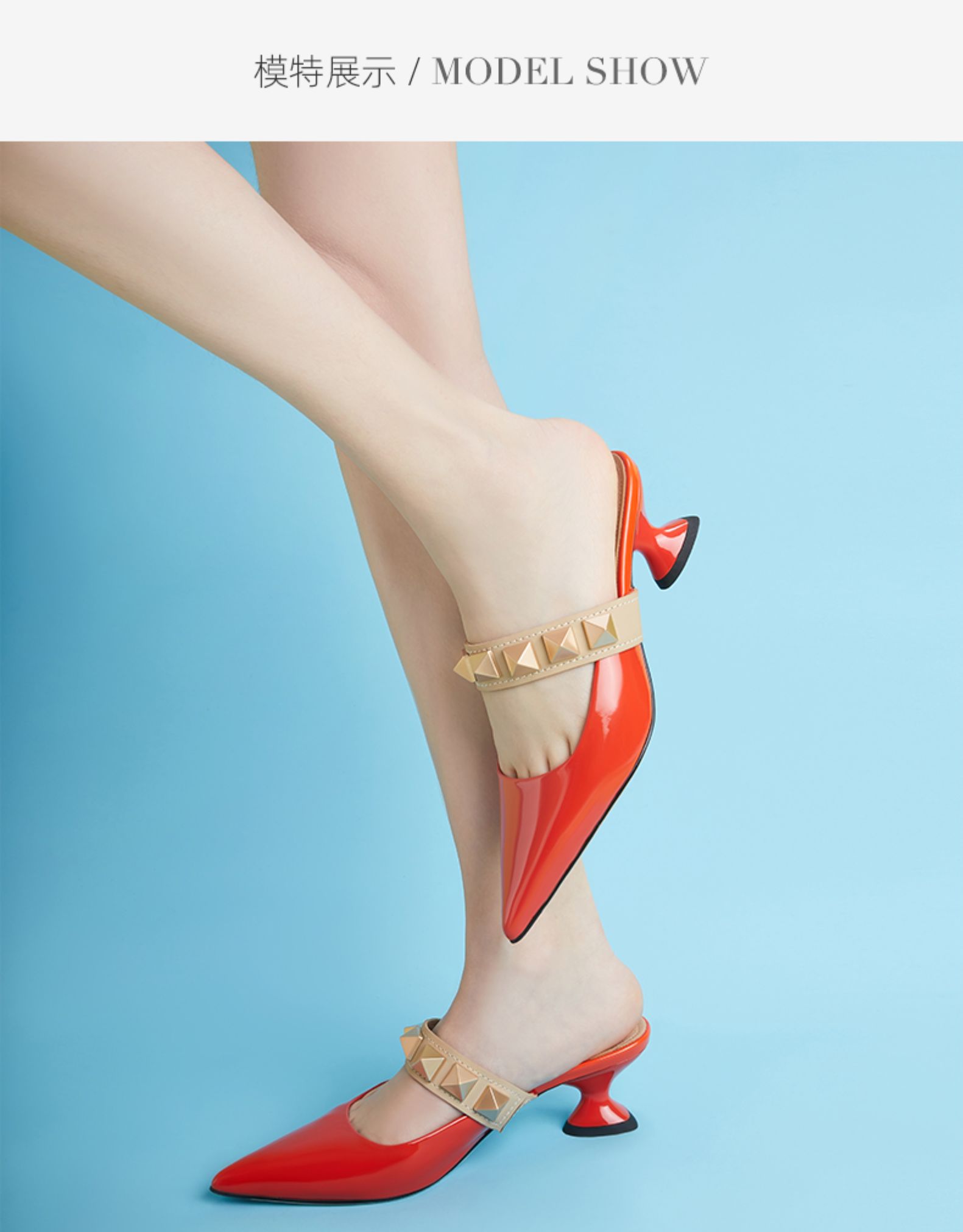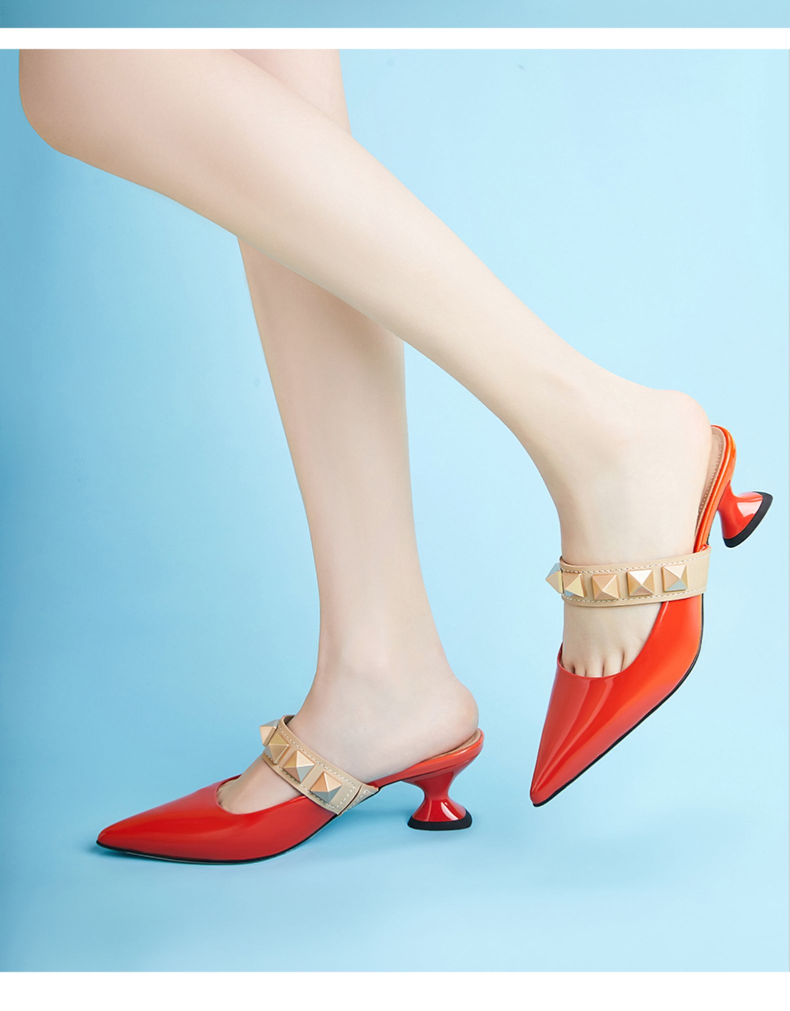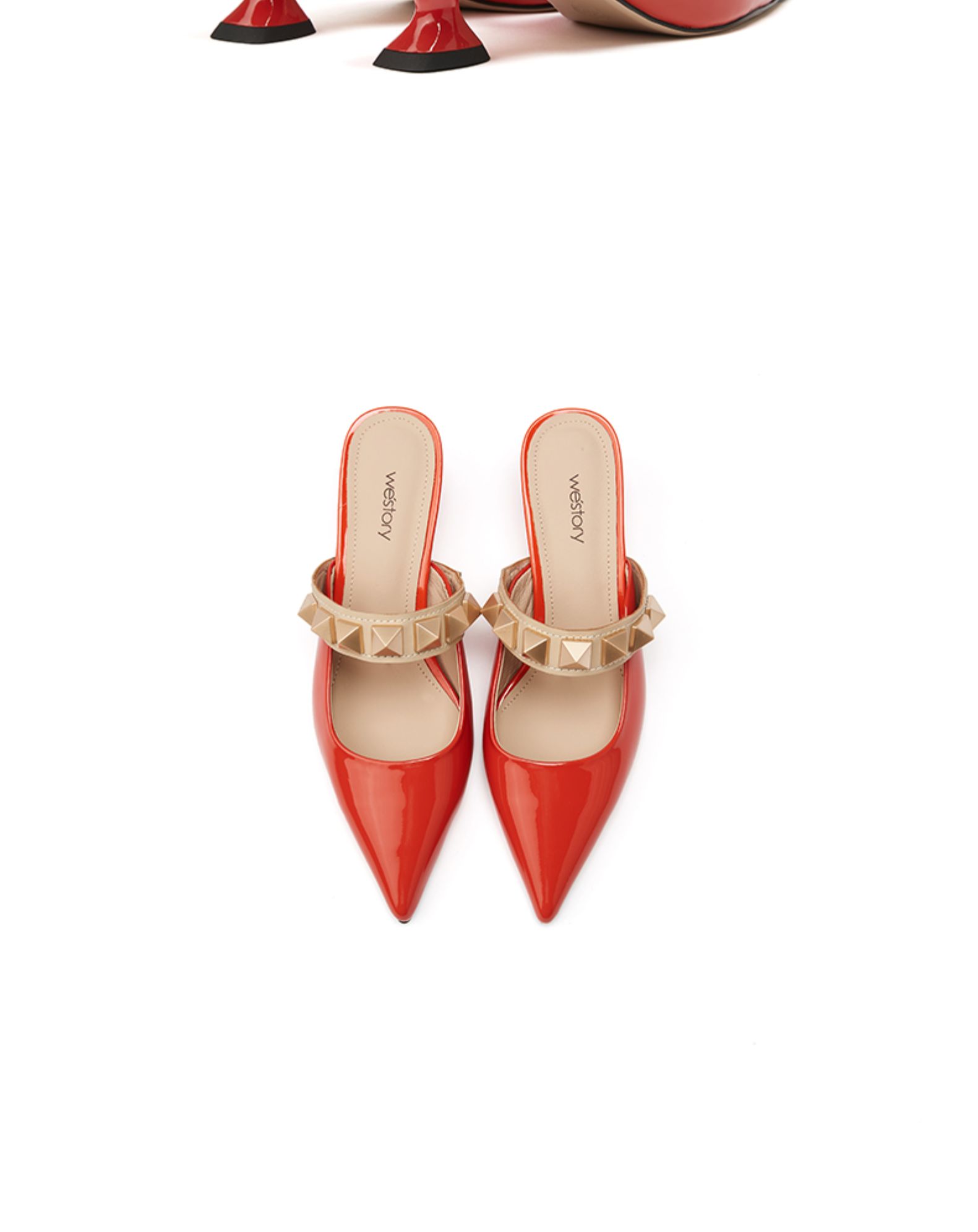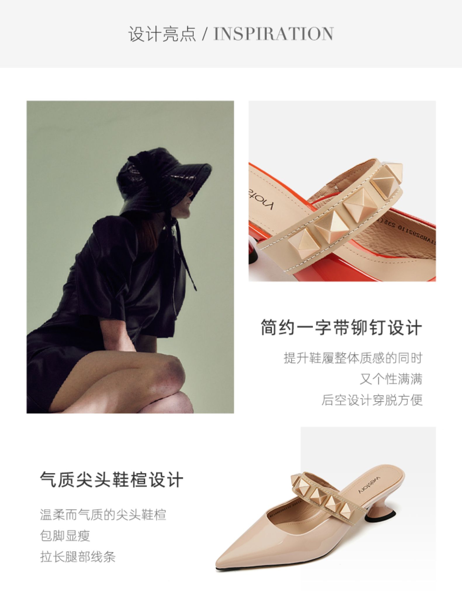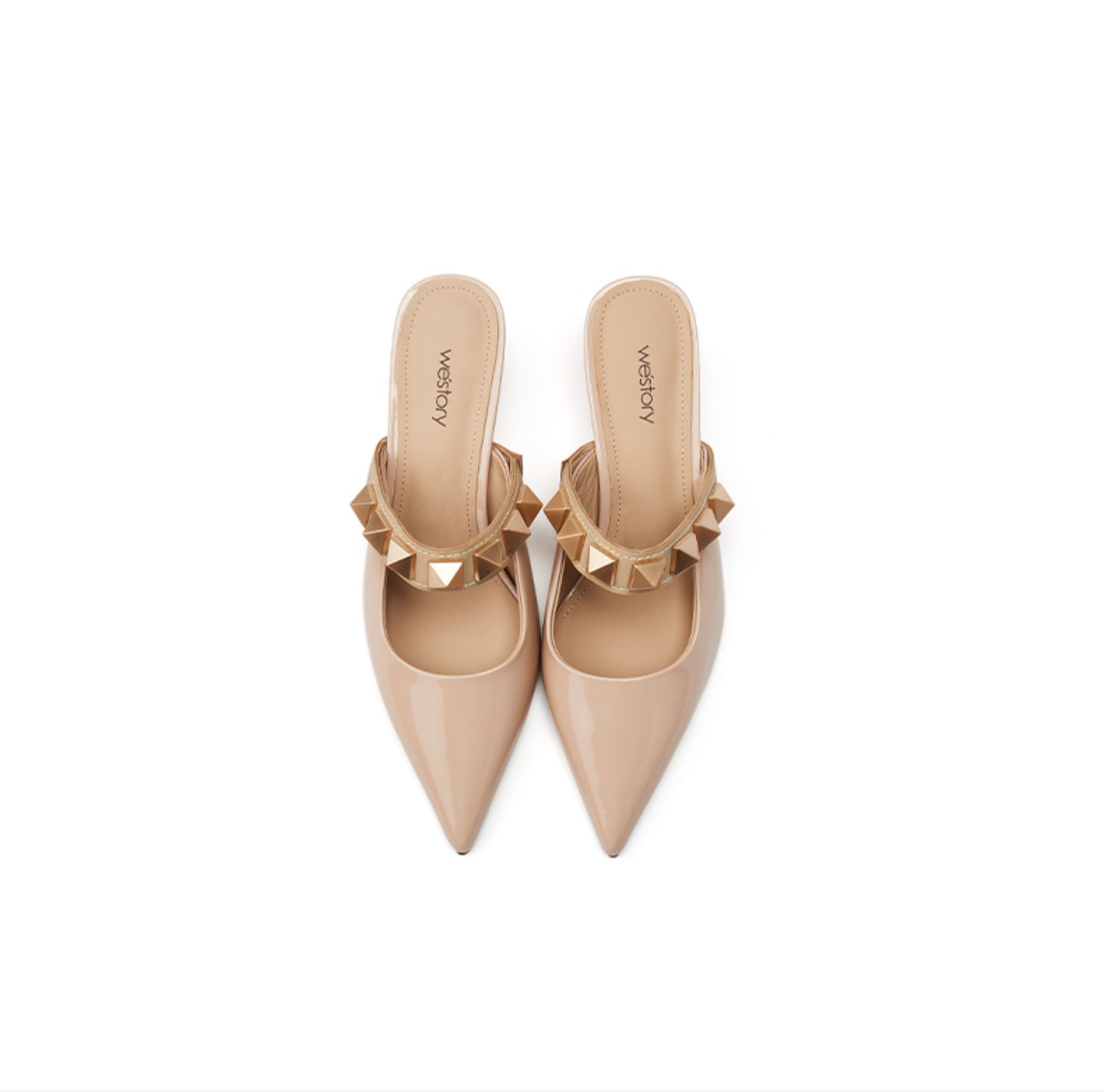 westory女鞋2021夏季新款铆钉穆勒拖一字带凉鞋外穿W21AH52921