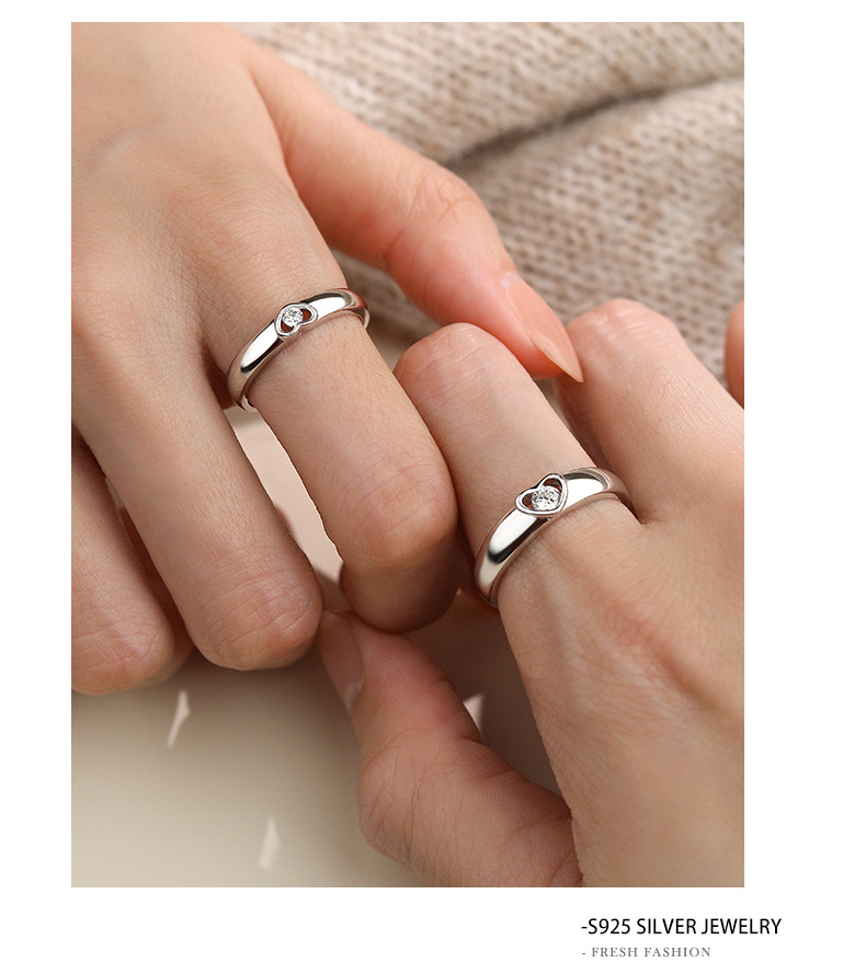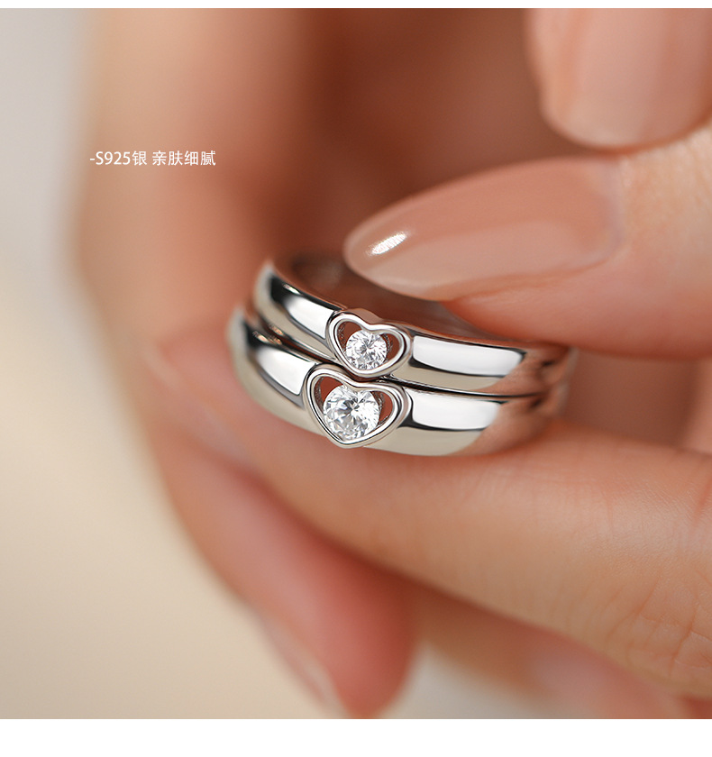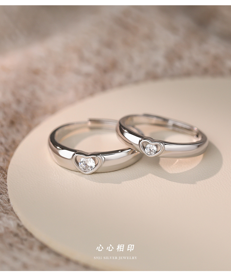 【心心相印】S925银锆石爱心情侣戒指【YXS-K352】