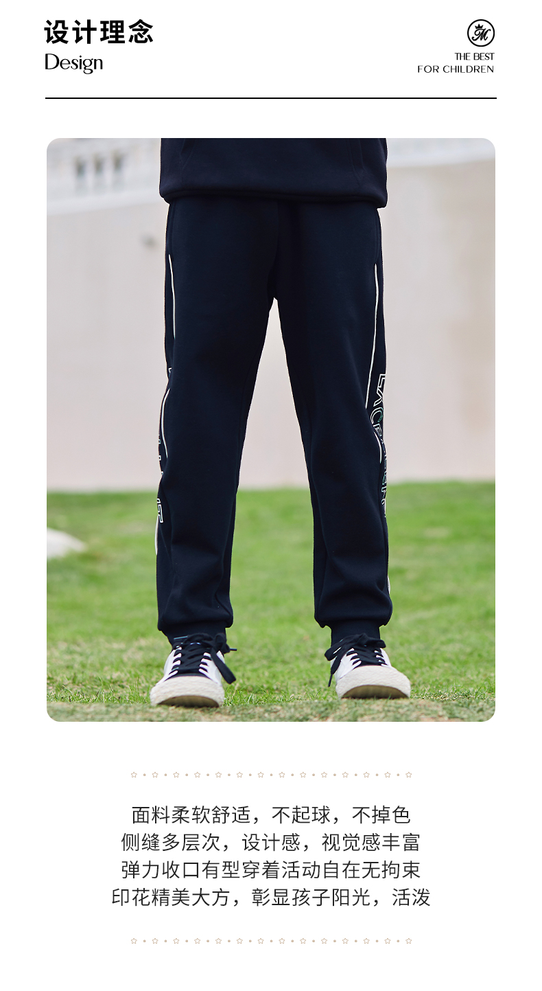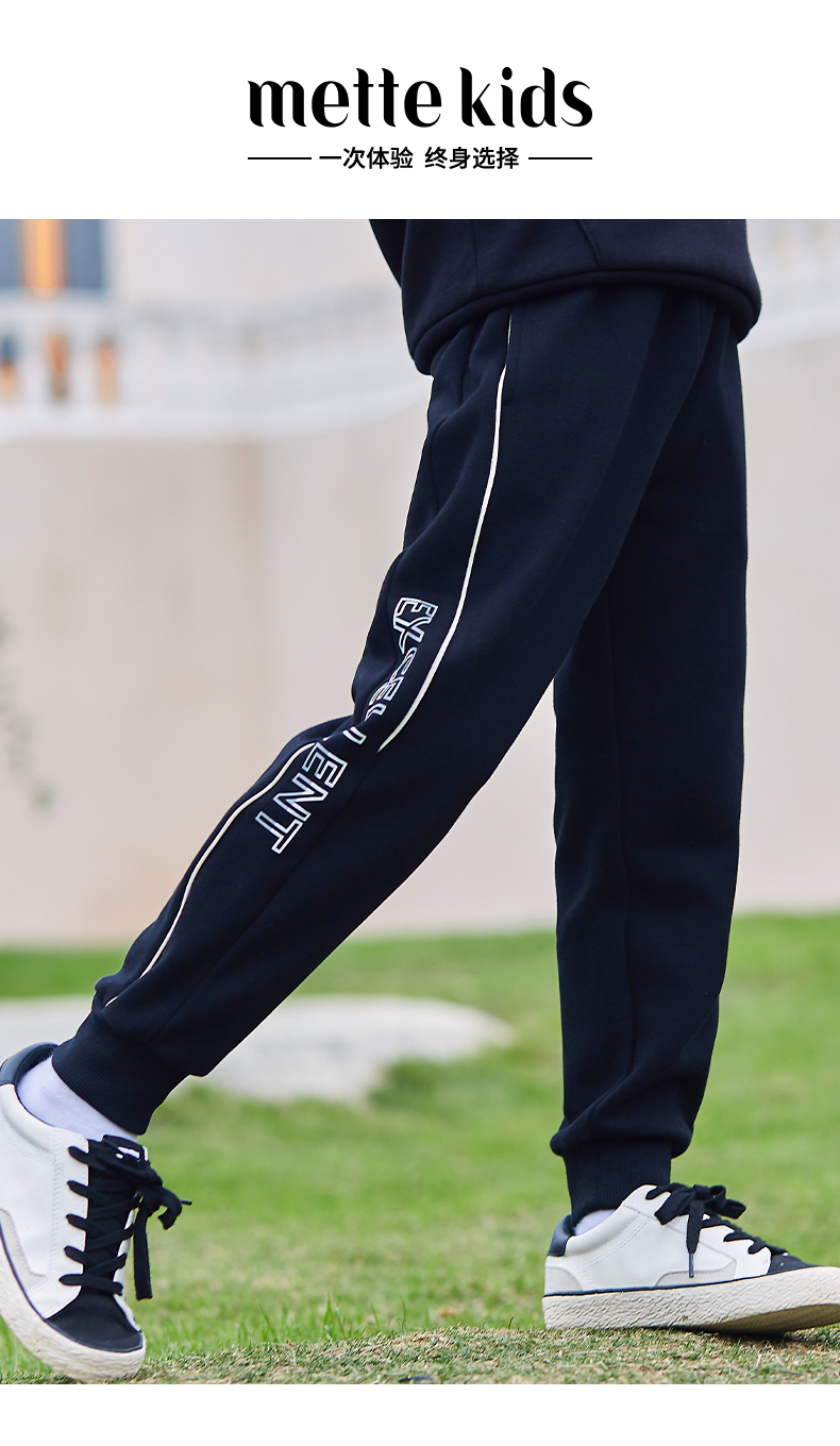 mettekids男童裤子儿童春秋新款休闲卫裤童装中大童运动束脚长裤