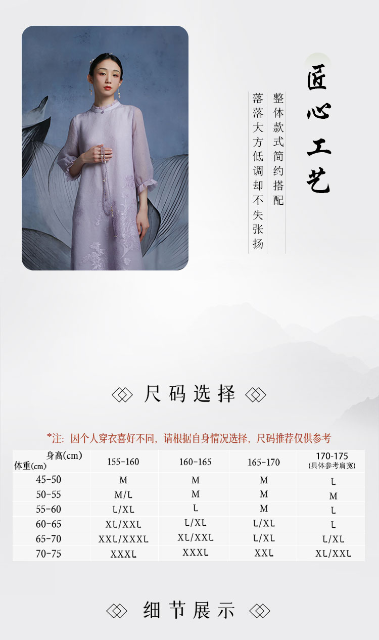 吉祥衣家中国风新中式复古裙子紫色高定真丝女装风传花信连衣裙