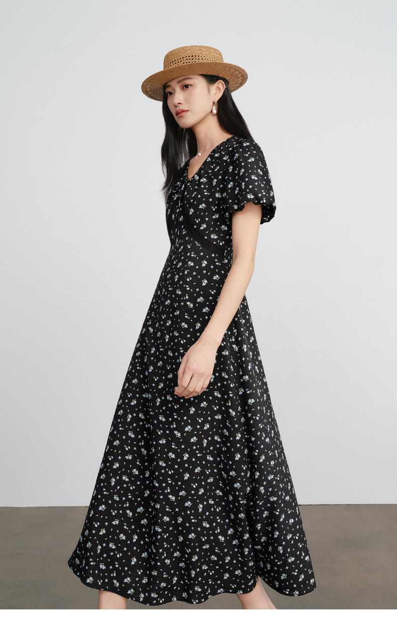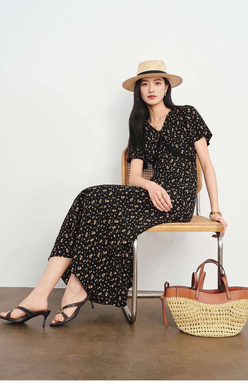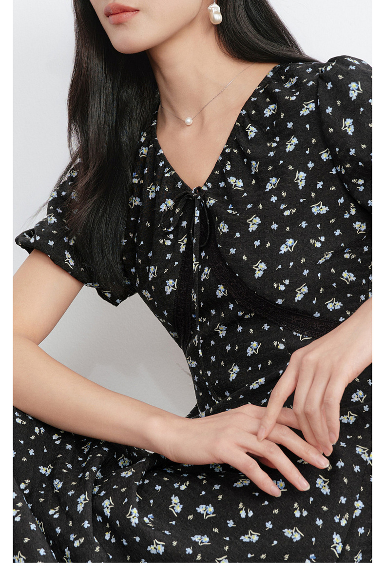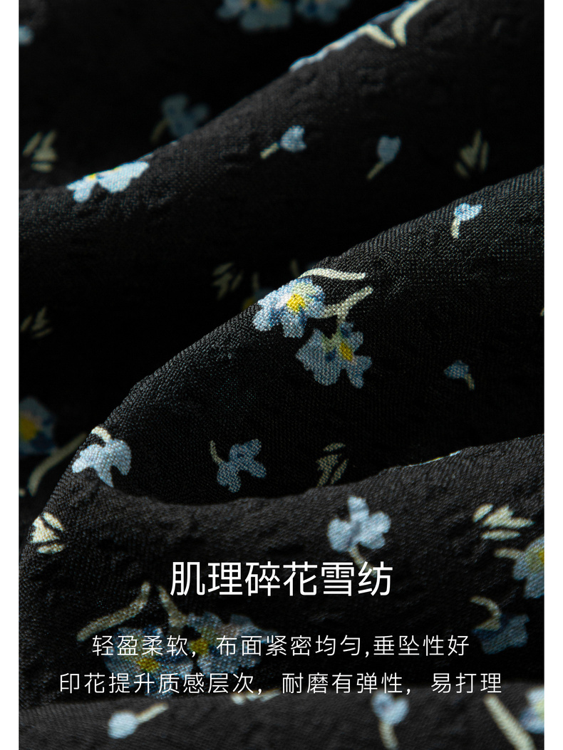 【严选】朱珠代言伊芙丽法式优雅收腰显瘦V领雪纺碎花连衣裙女2026新款1H4990511