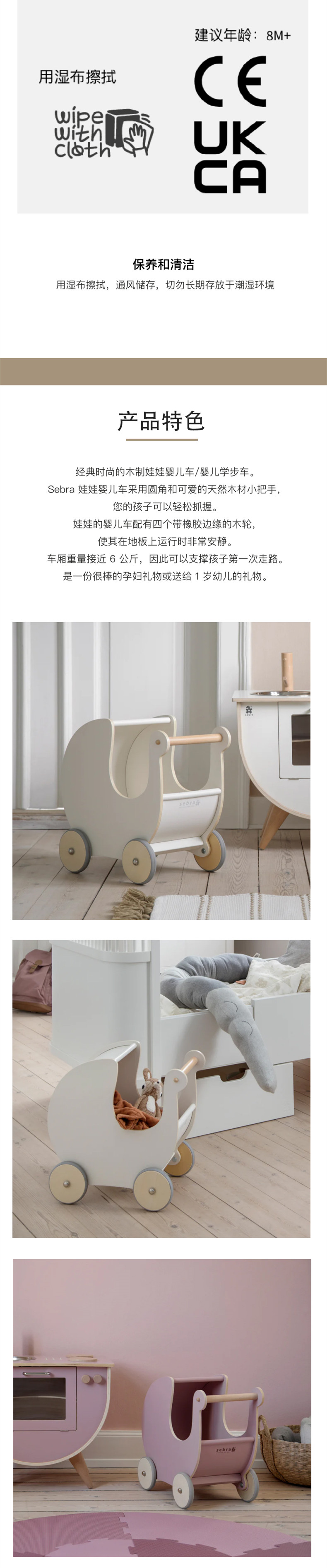 丹麦Sebra宝宝木质手推车婴童学走路助学步车低龄儿童玩具8月+