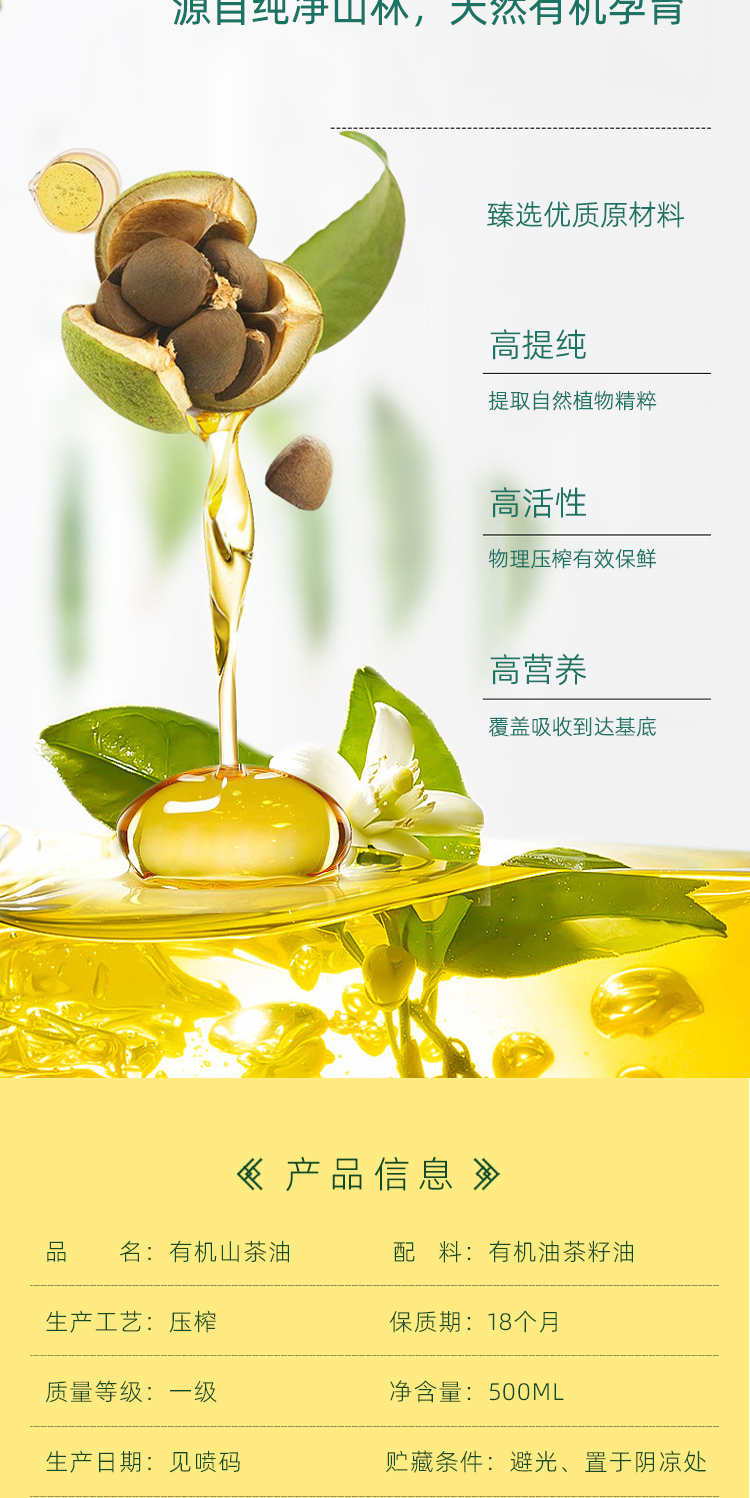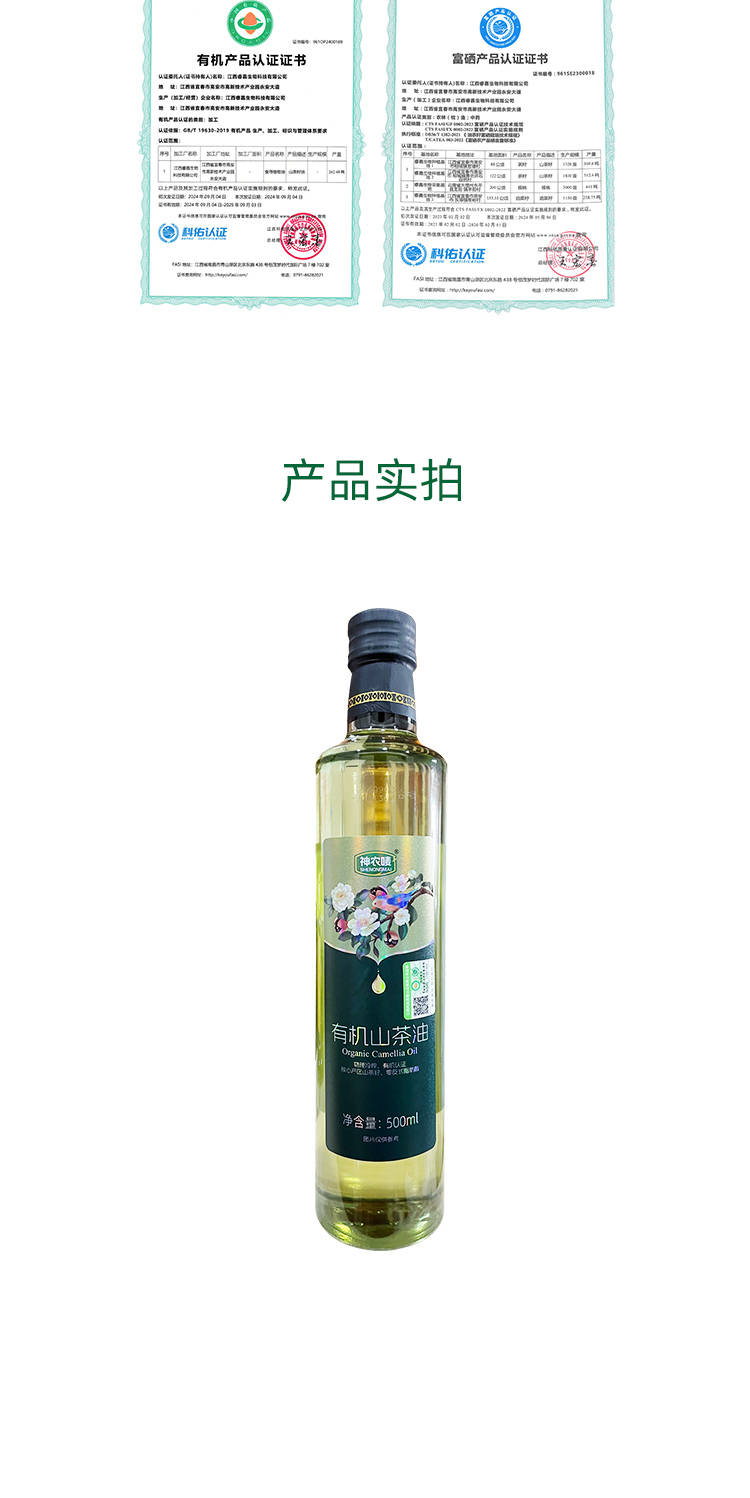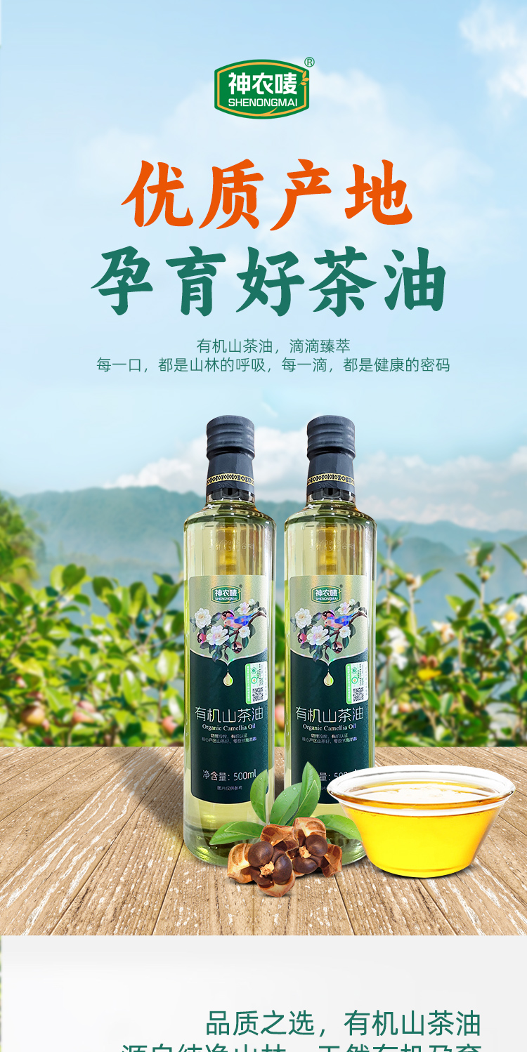 神农唛有机山茶油500ml植物食用油
