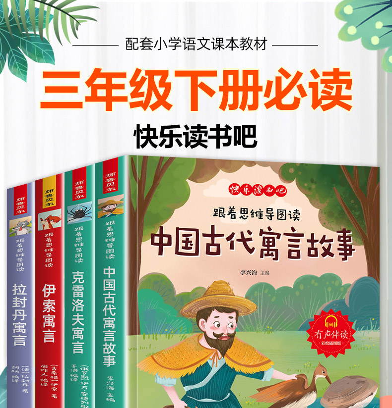 三年级下 小学语文跟着思维导图读中国古代寓言故事克雷洛夫寓言伊索寓言拉封丹寓言有声伴读彩绘插图版