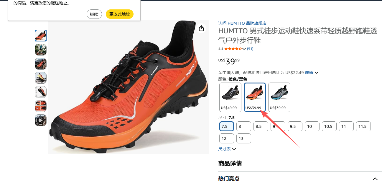 【出口品质】悍途HUMTTO男款透气防滑徒步鞋跑鞋越野跑鞋
