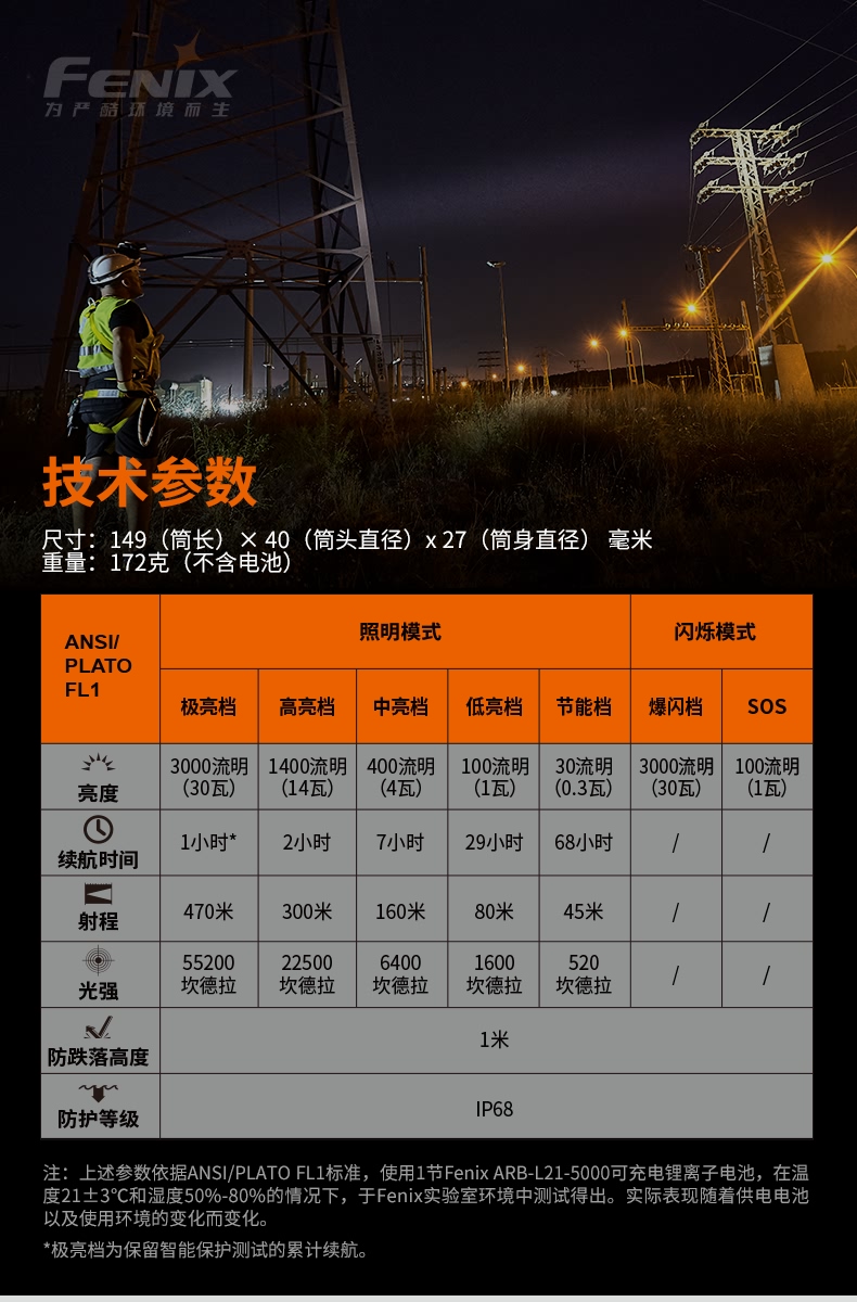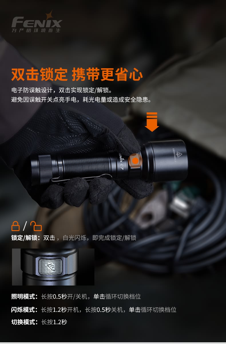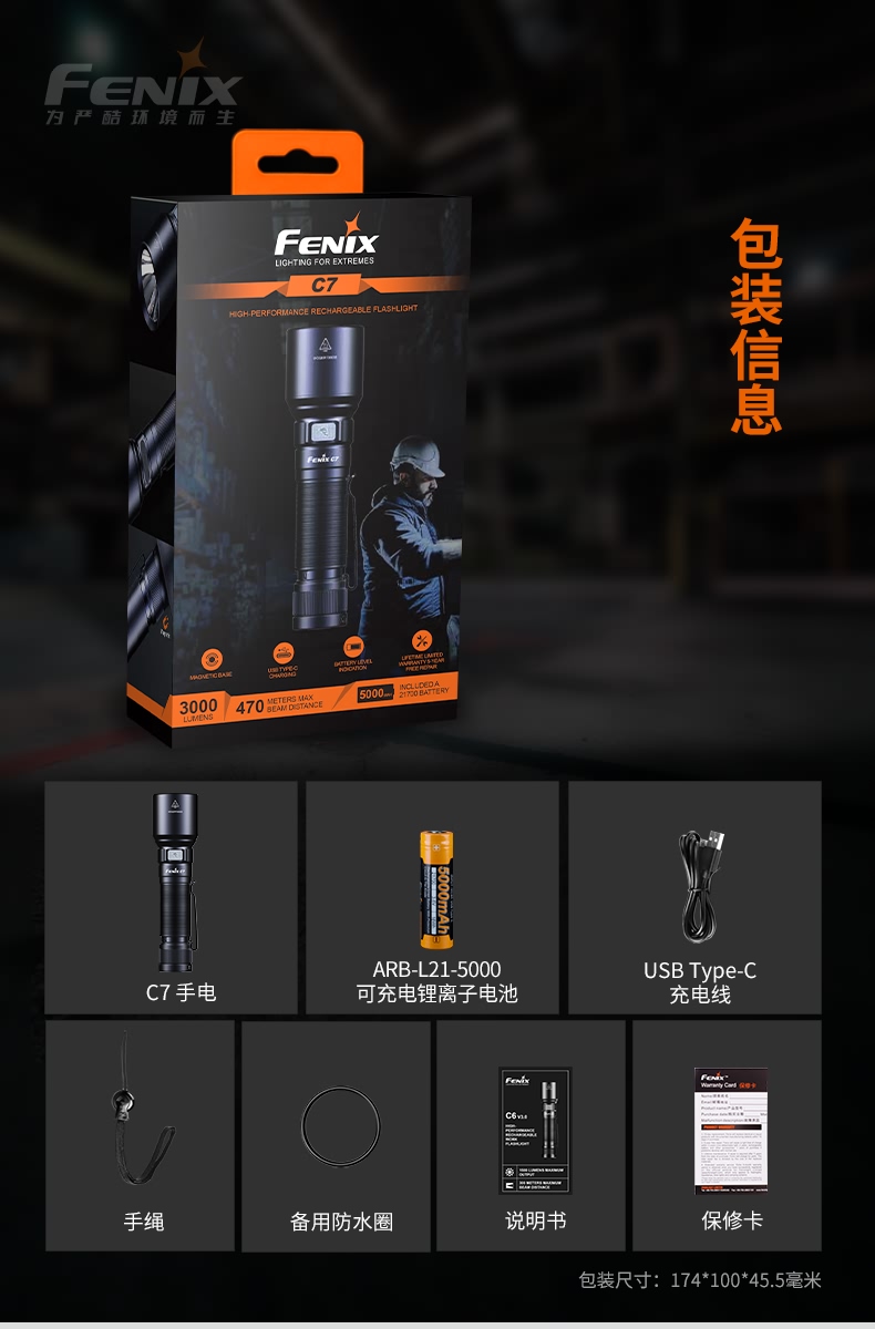Fenix菲尼克斯C7户外手电筒强光充电21700电池远射磁吸巡检工作灯