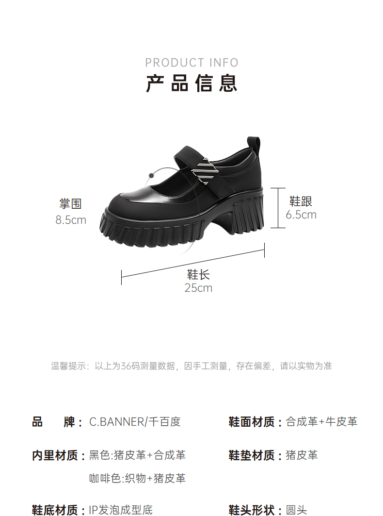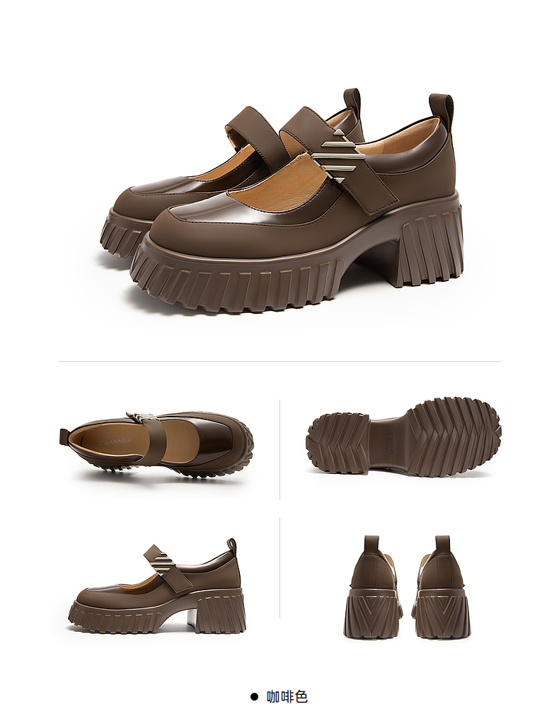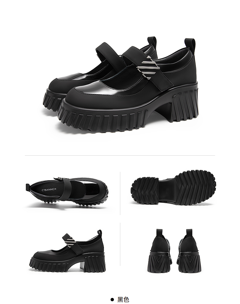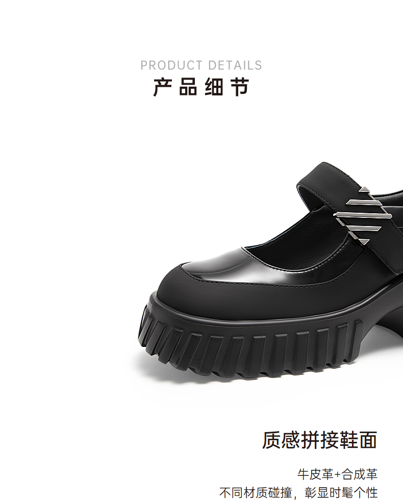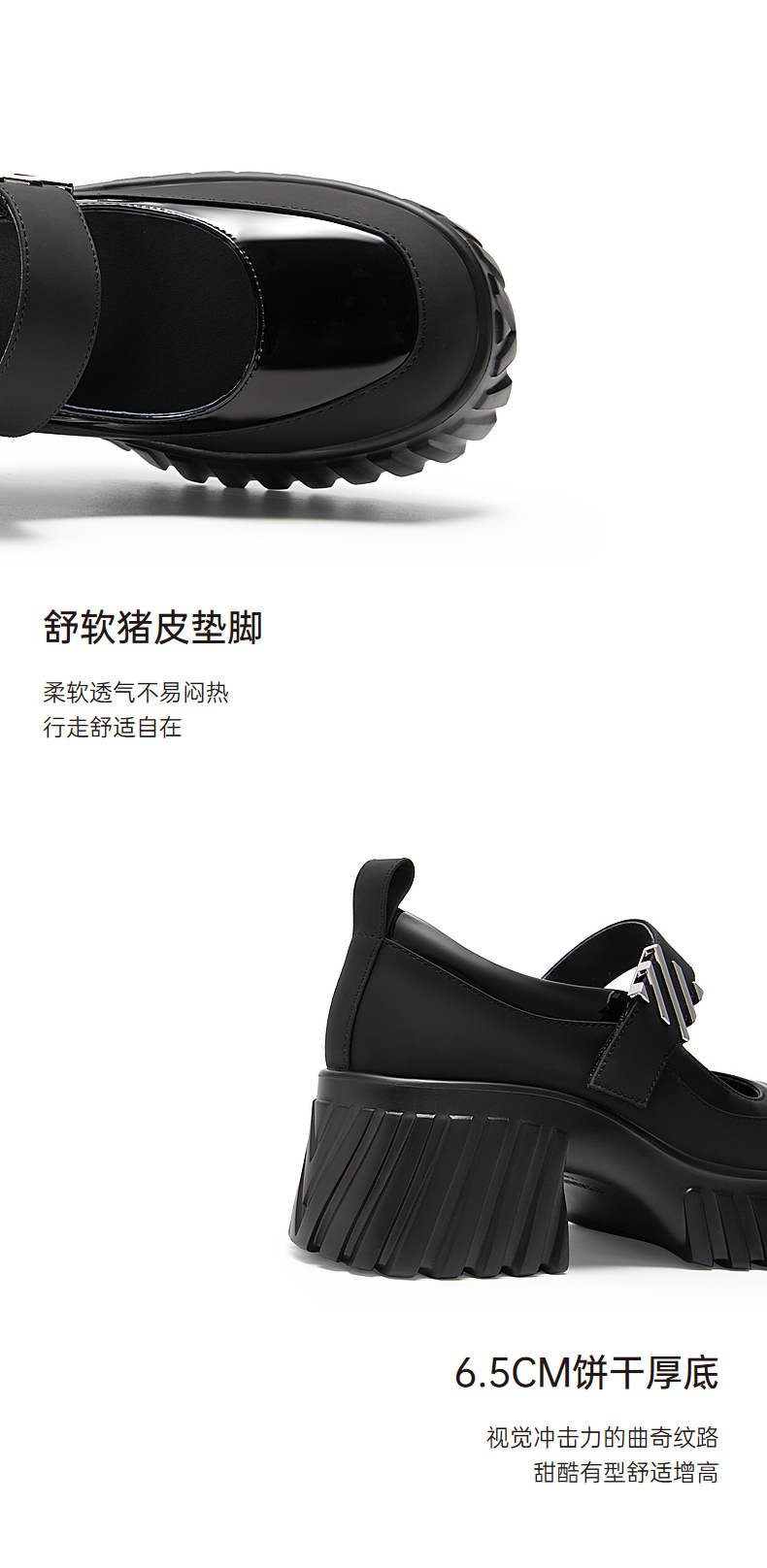千百度饼干厚底玛丽珍鞋女秋季浅口漆皮增高单鞋小皮鞋A24406319