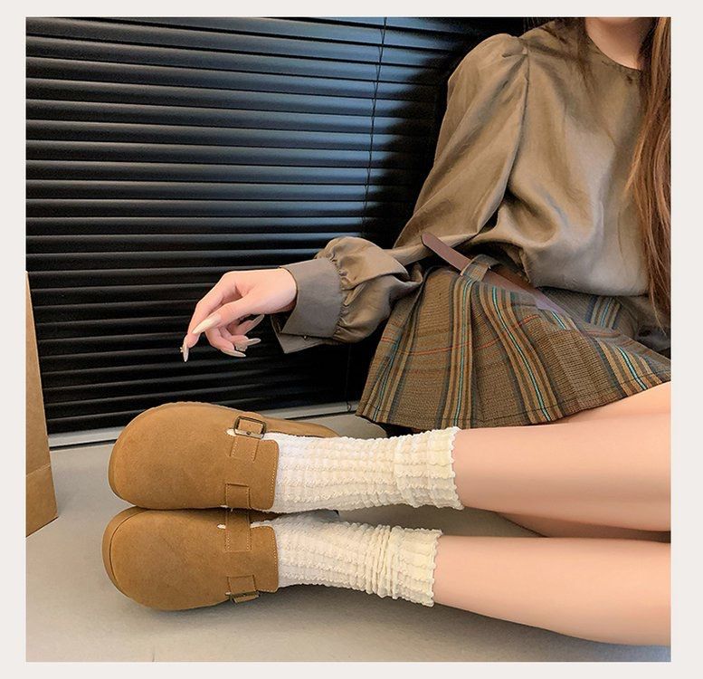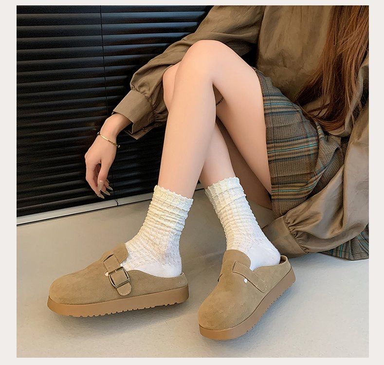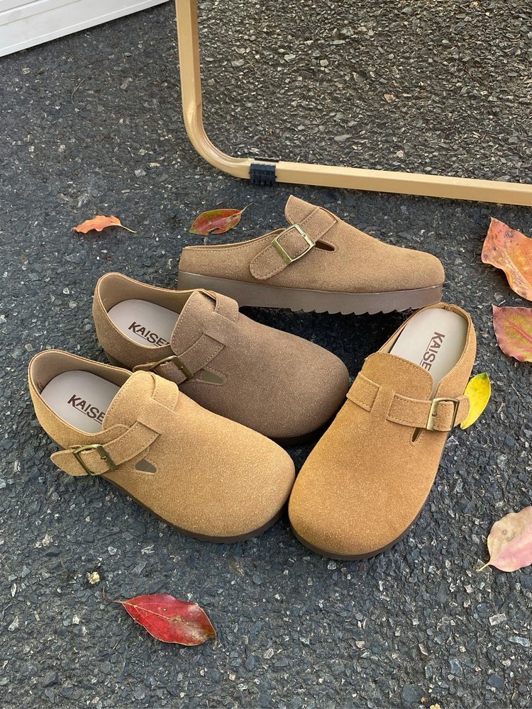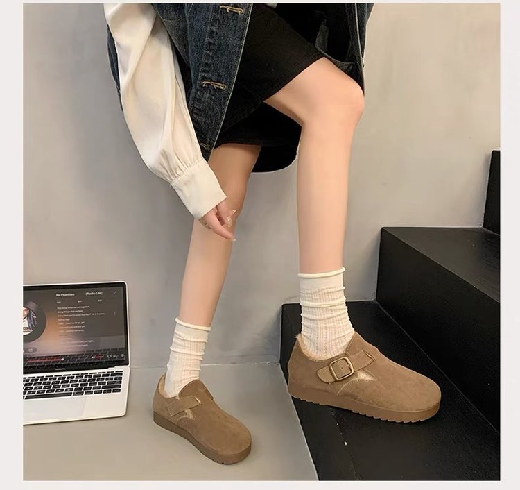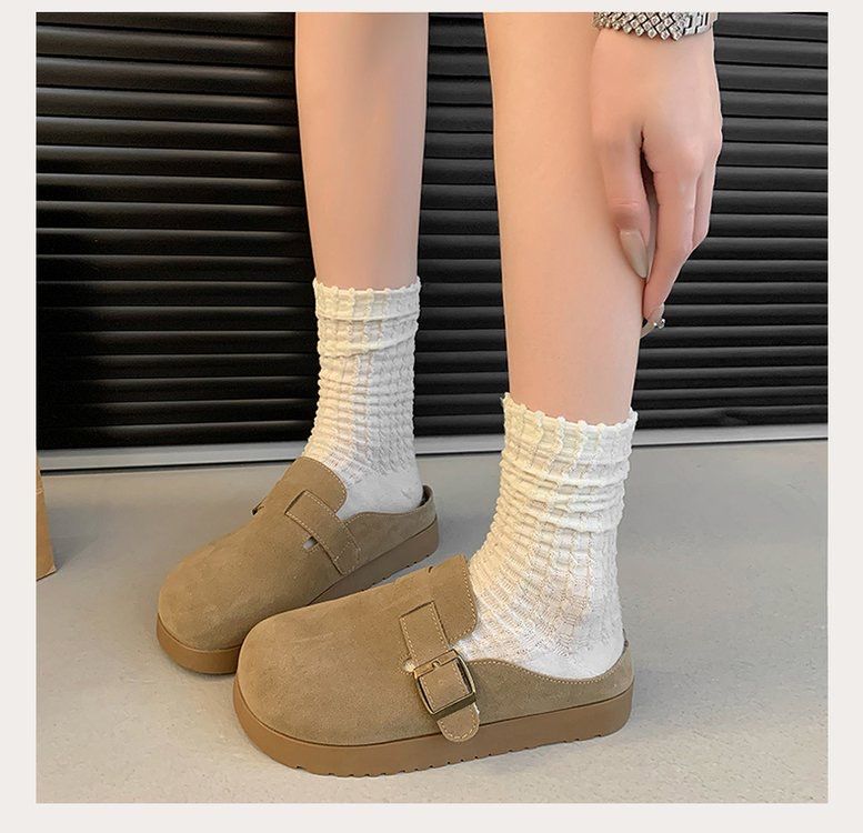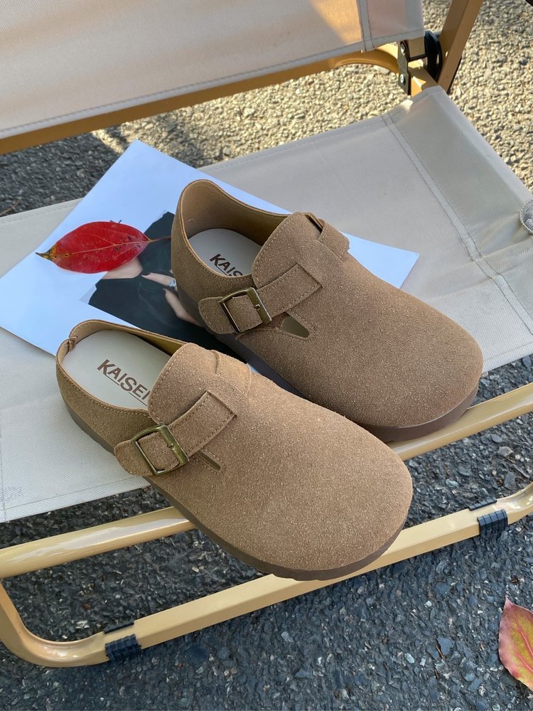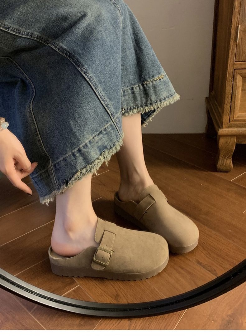 基础信息:型号:KS7810/KS7811颜色:驼色/卡其尺码:35-40(单鞋标准,包头半拖偏小一码)鞋面材质:磨砂绒(专业术语为合成革)鞋底材质:TPR跟高:约2.5cm左右