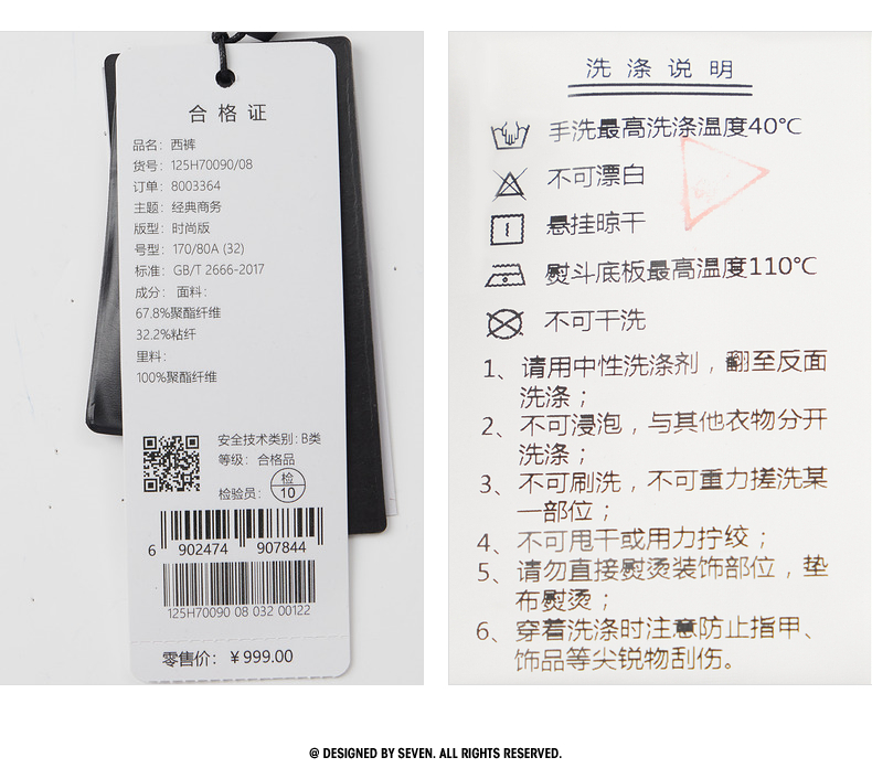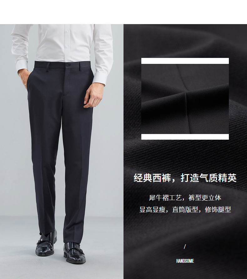 【犀牛褶免烫】柒牌西裤男士秋季新款商务休闲易打理直筒长裤125H70090