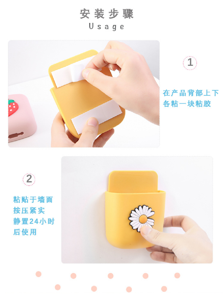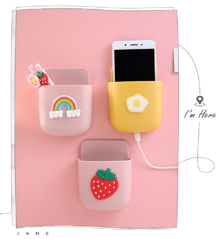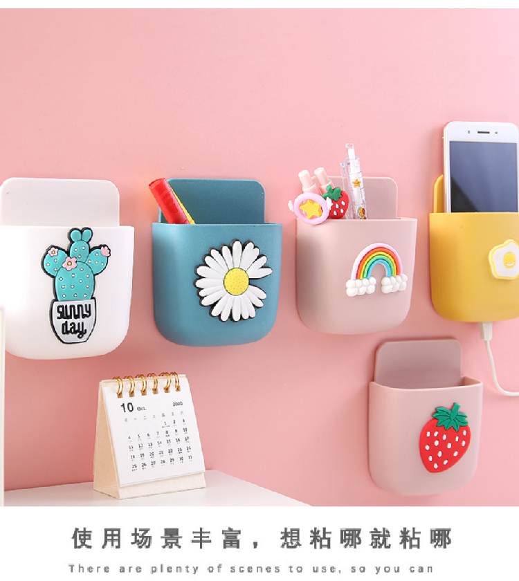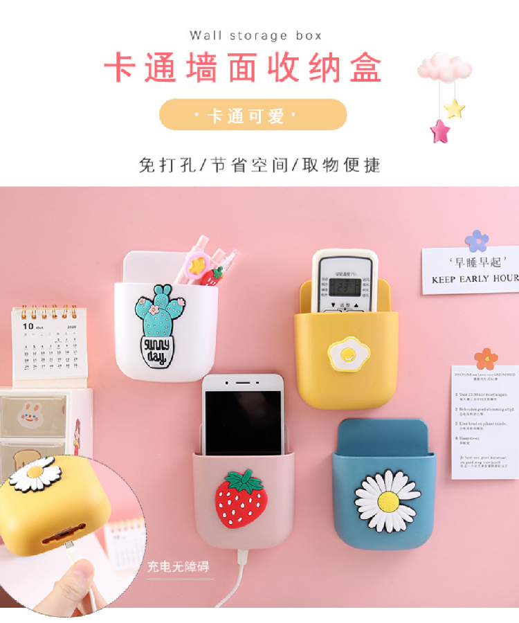 【创意卡通收纳挂架】客厅办公室免打孔置物架装饰架手机架 卡通卧室背景墙面收纳盒