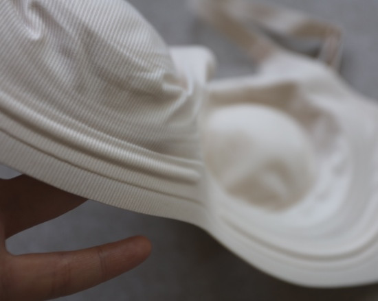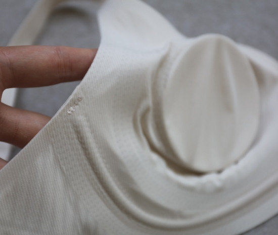 然后 小圆杯的周圈 里面是点状粘合加固 不必担心跑杯移位 胸垫也可取出