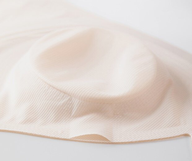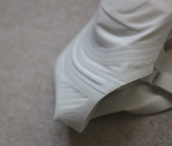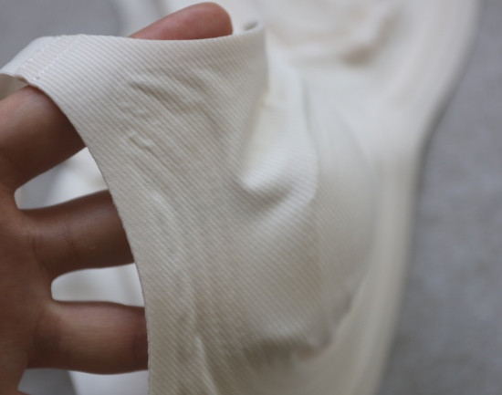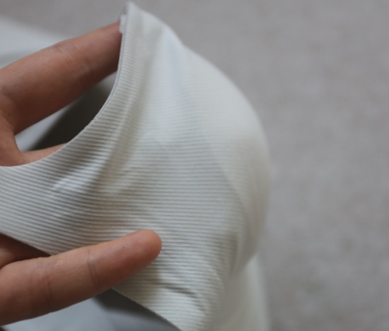 采用20D纱线 织成的纤薄罗纹肌理 整体是非常细密的小竖纹