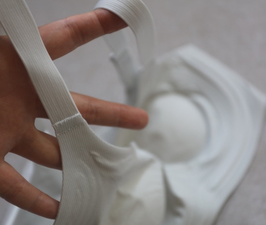 罩杯的外侧上端 有加固缝线 肩带衔接处 也做了二道缝线加固 肩带不可拆