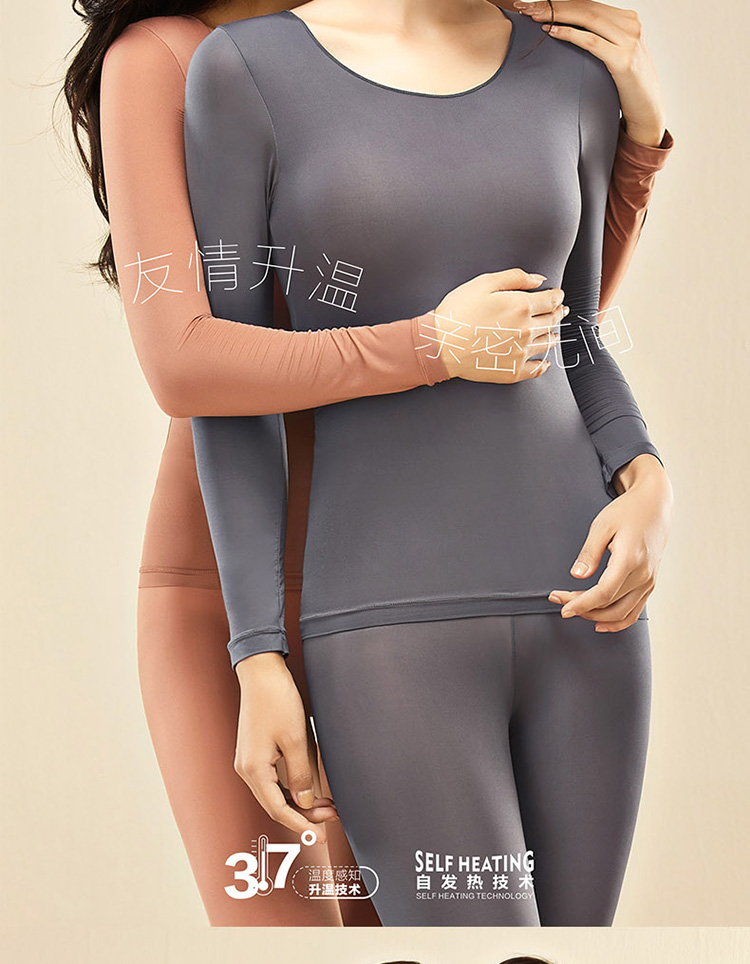 【黑科技玻尿酸 保暖超薄美肤衣】黑科技玻尿酸美肤衣美体修身显瘦超薄圆领打底衫保暖内衣套装秋冬紧身