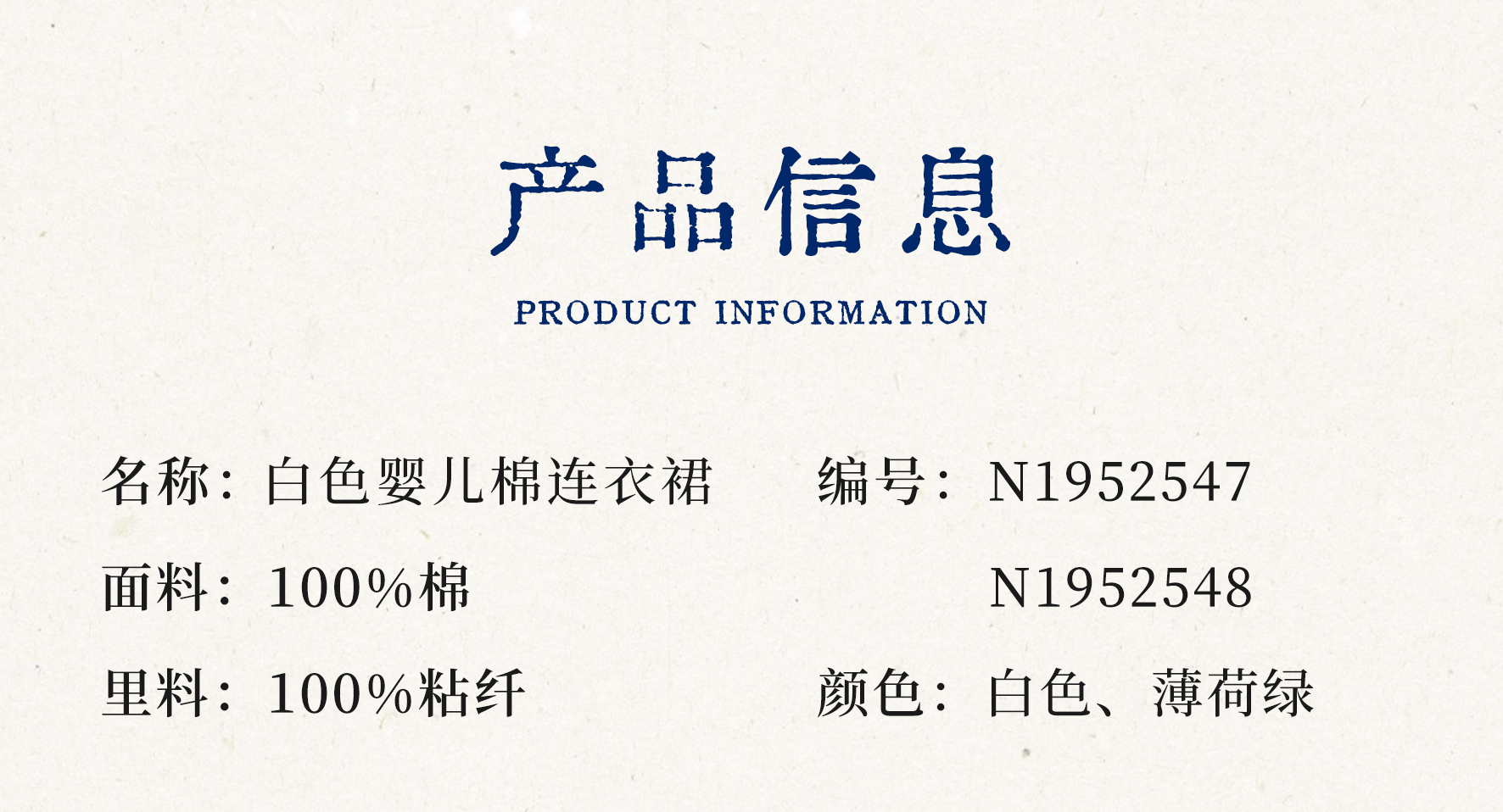 【林栖设计小店】【林栖推荐】2025年春夏新品婴儿棉无袖连衣裙背心裙白色N1952547绿色N1952548