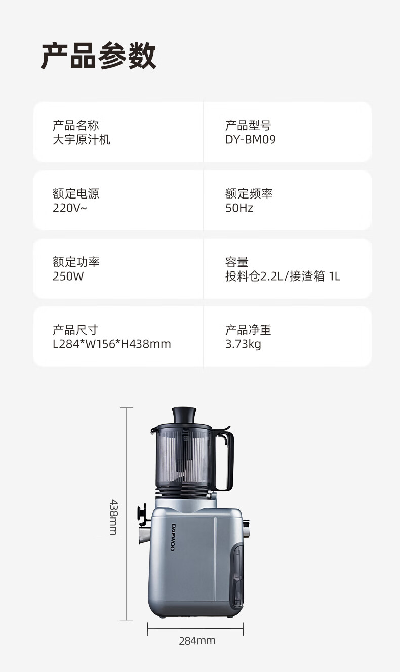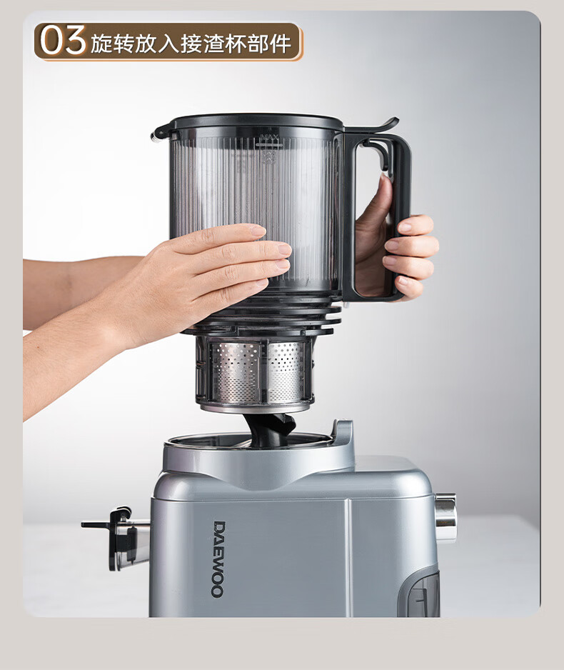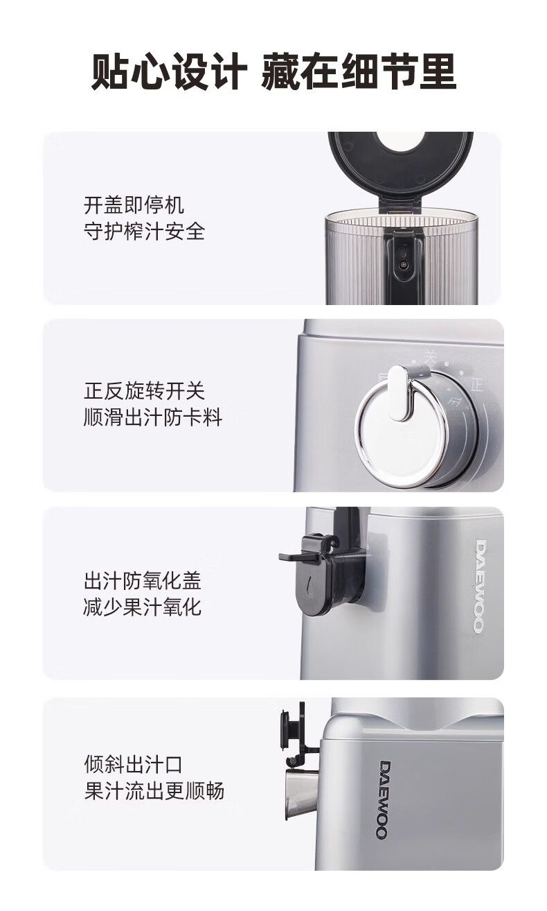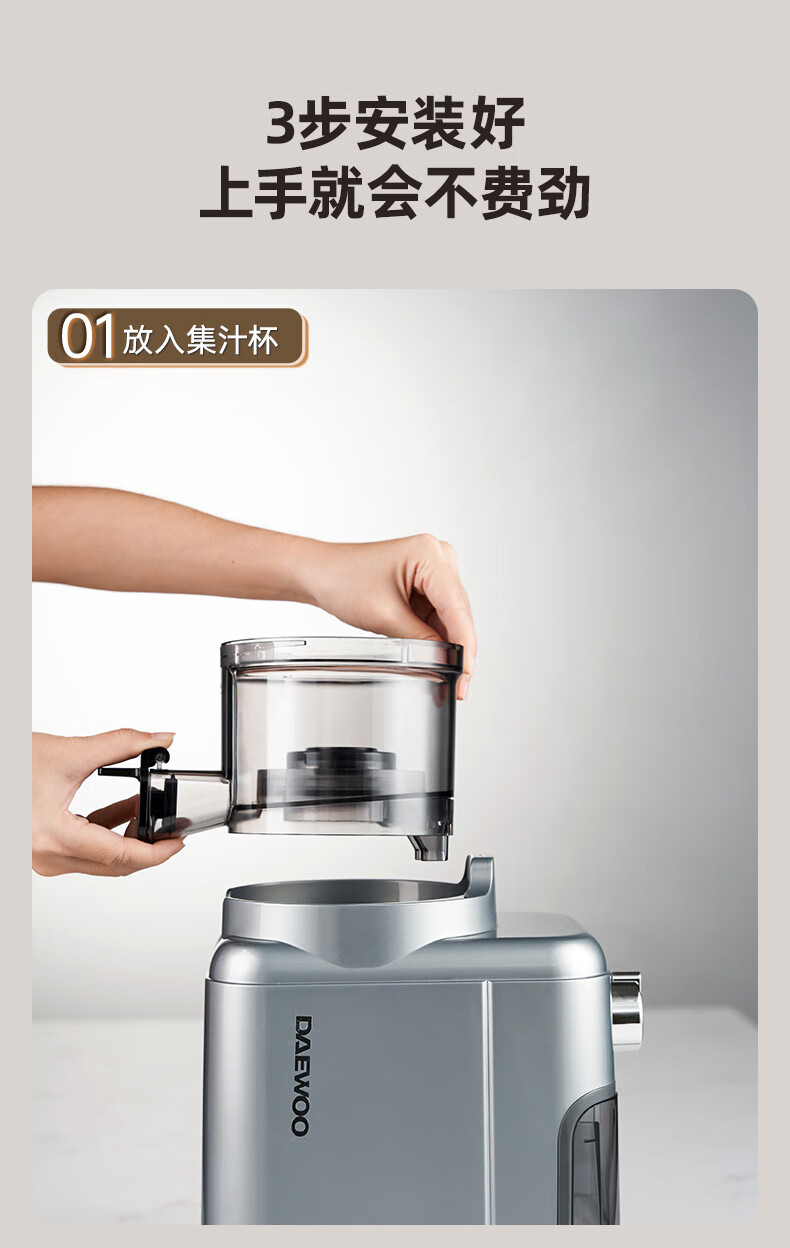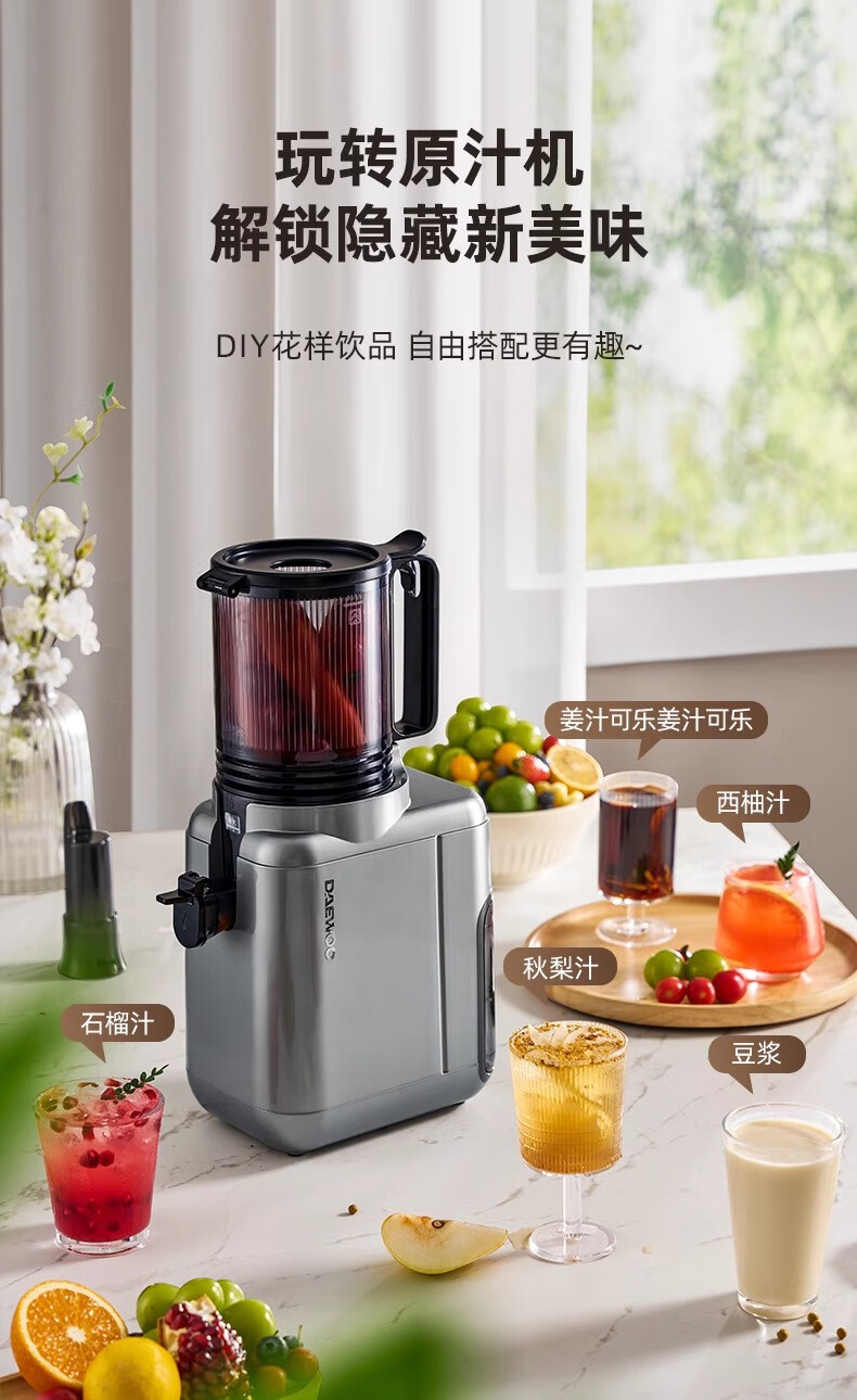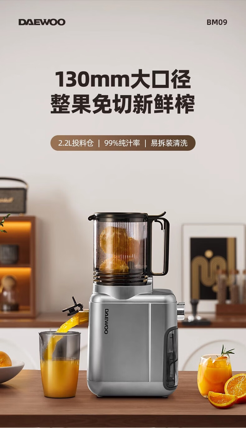 大宇(DAEWOO)榨汁机榨汁分离原汁机家用全自动渣汁慢磨130mm大口径易拆易清洗果汁机高纯汁率果蔬榨汁机 130mm大口径99%纯汁率-银色