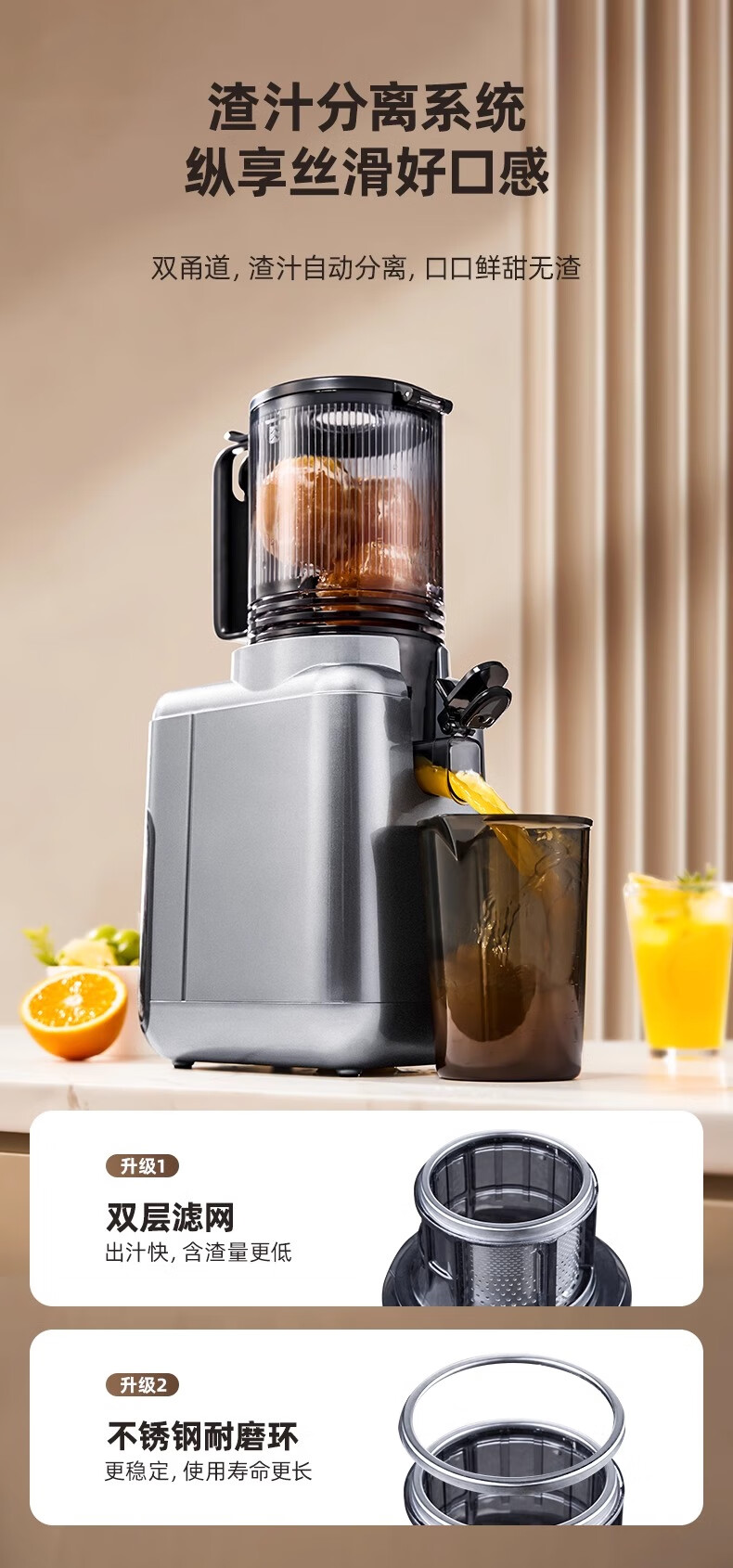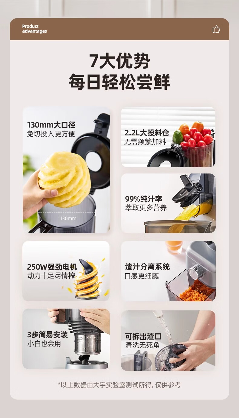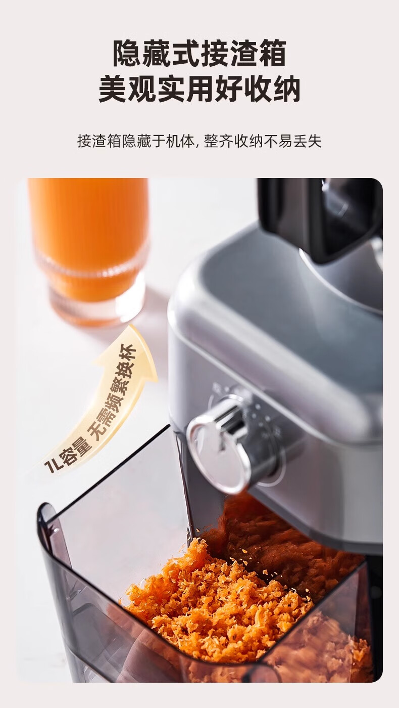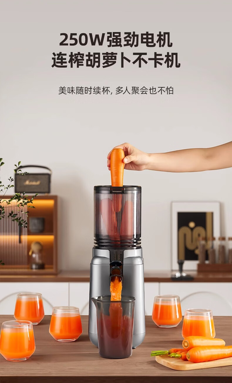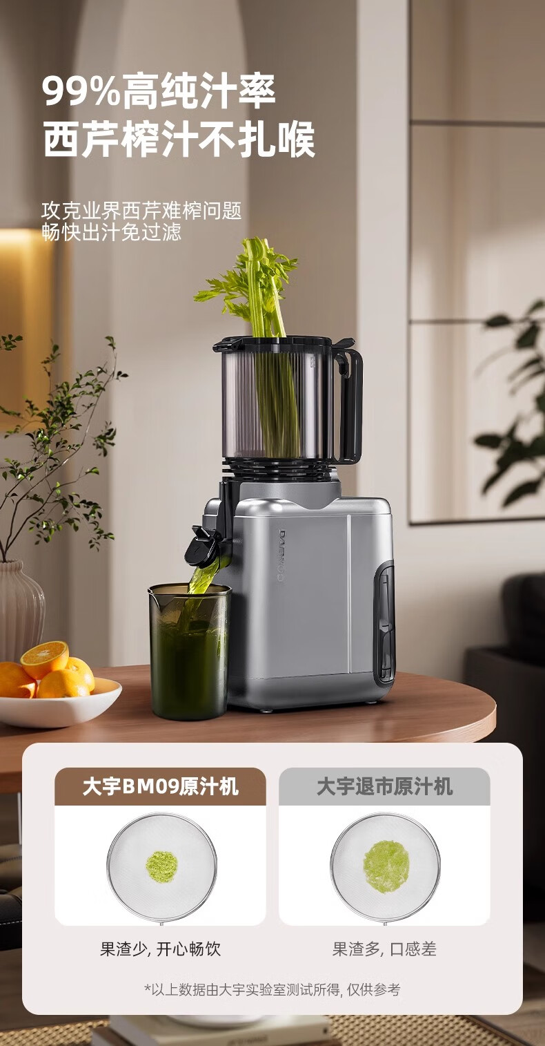 大宇(DAEWOO)榨汁机榨汁分离原汁机家用全自动渣汁慢磨130mm大口径易拆易清洗果汁机高纯汁率果蔬榨汁机 130mm大口径99%纯汁率-银色