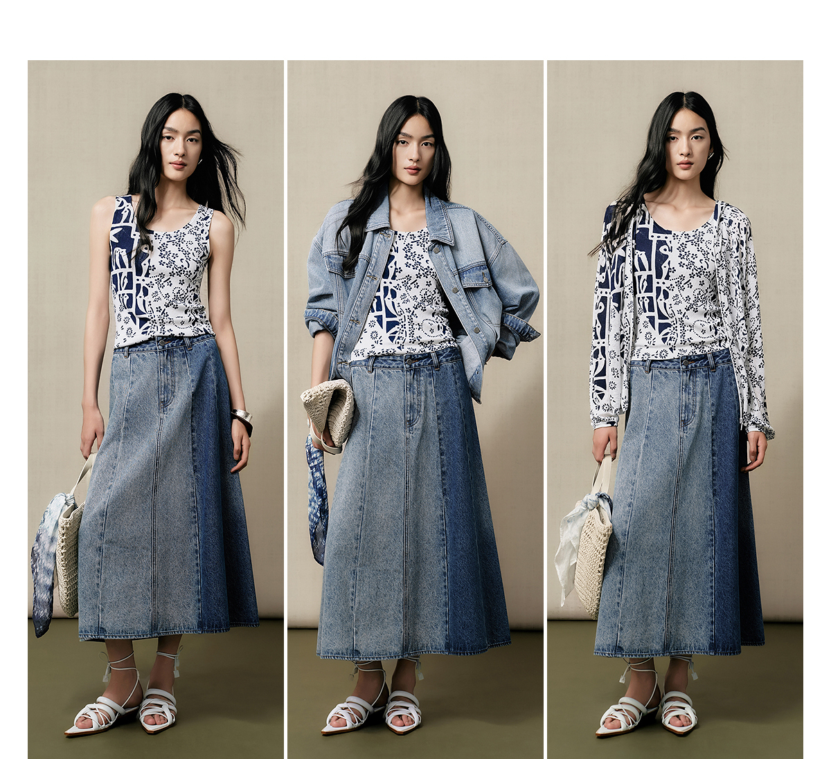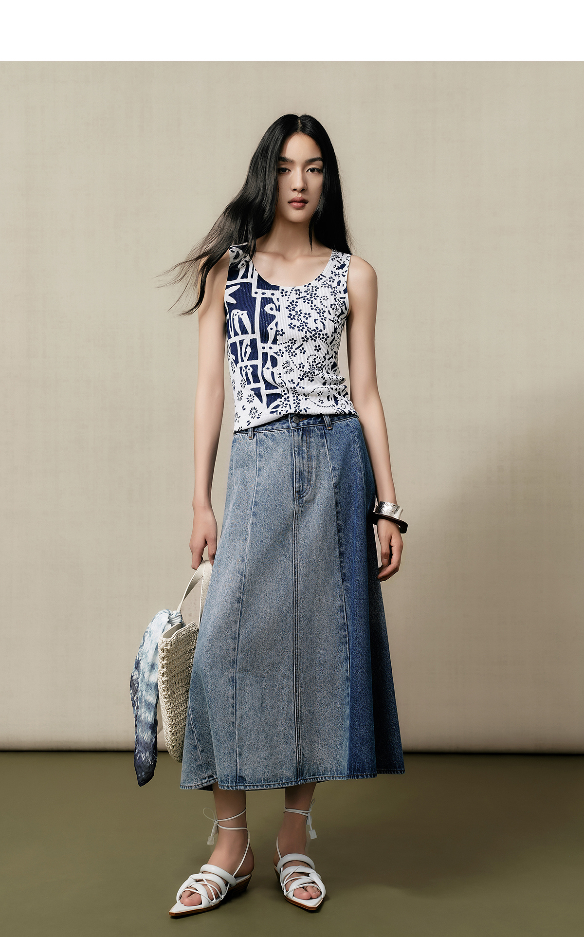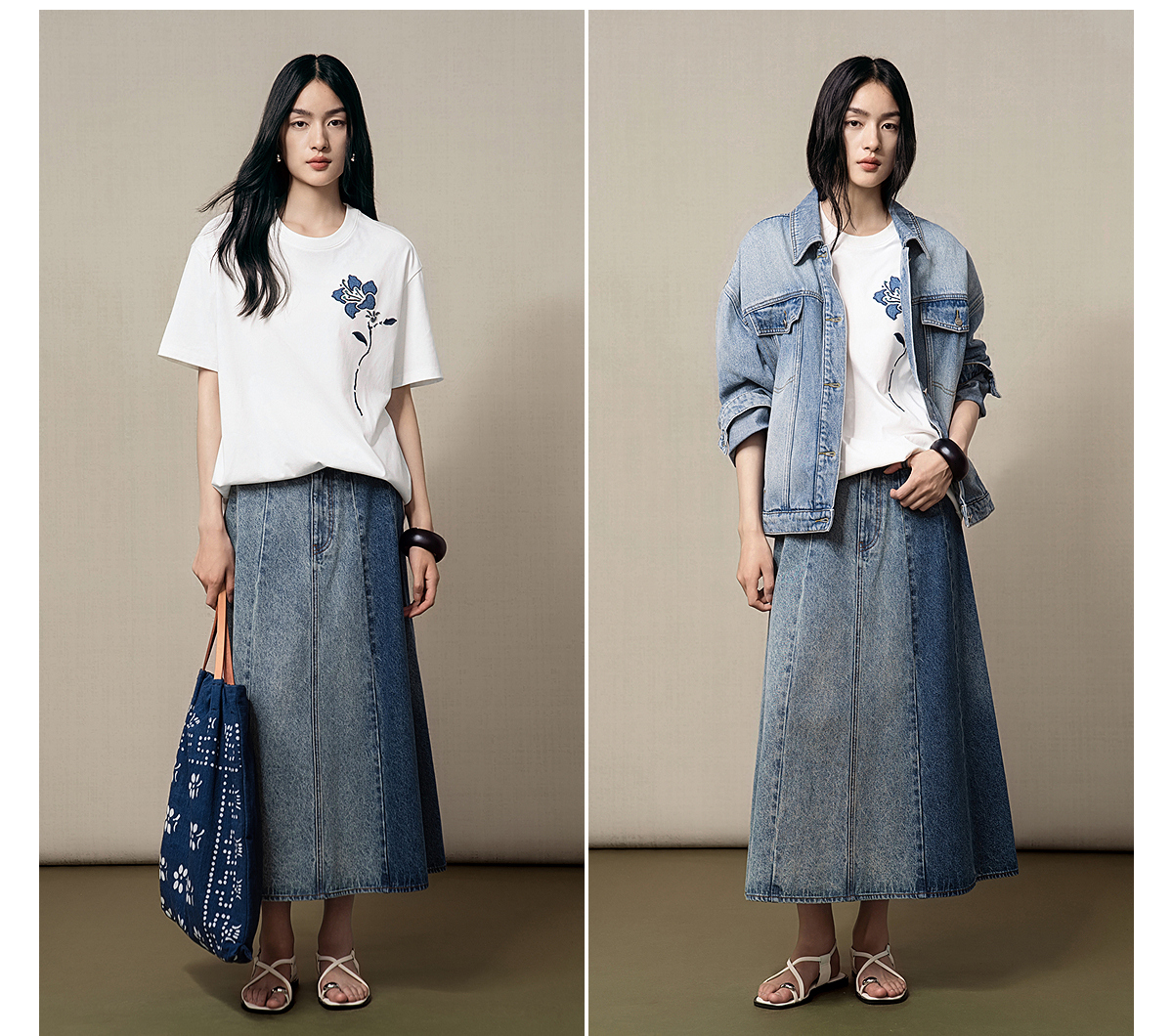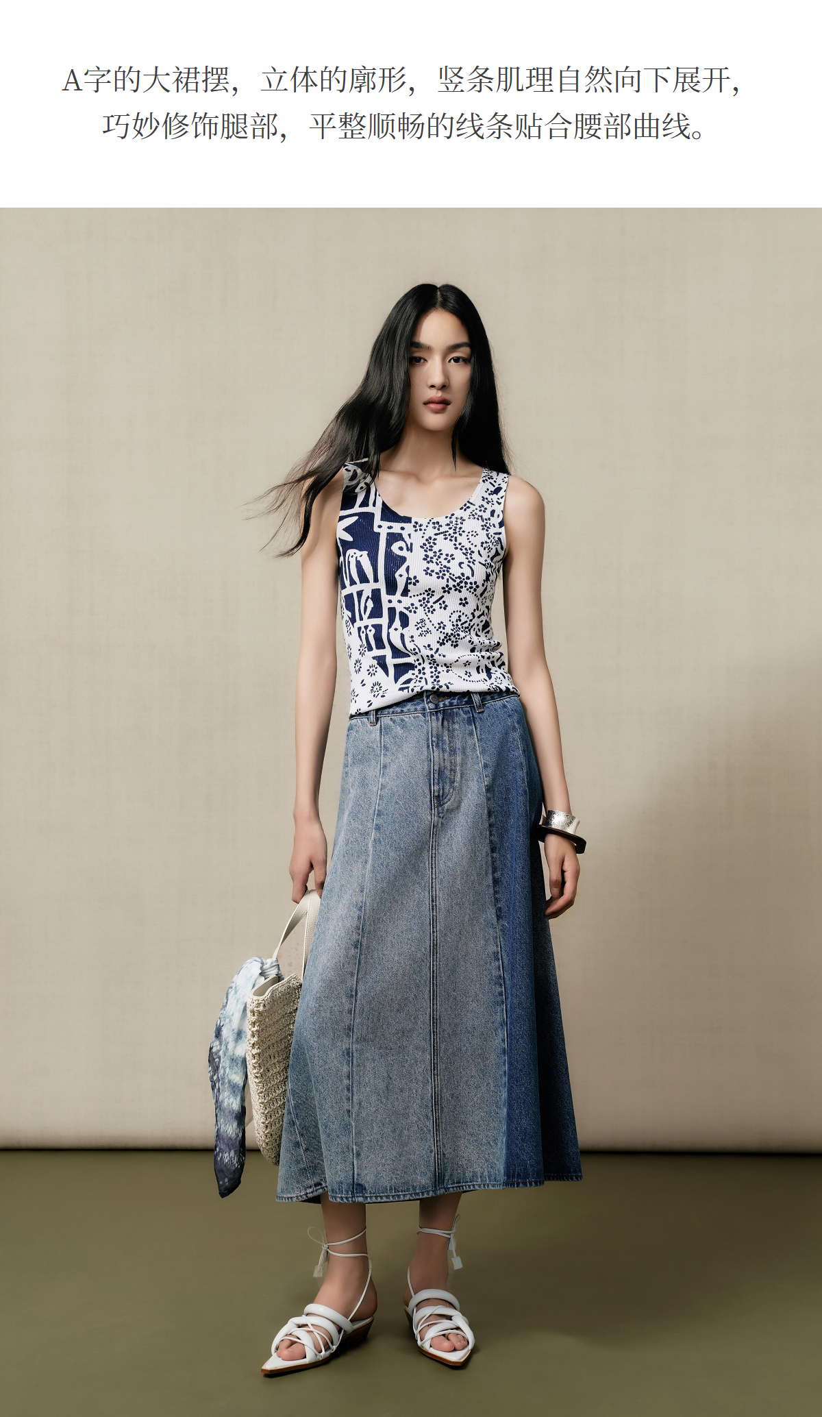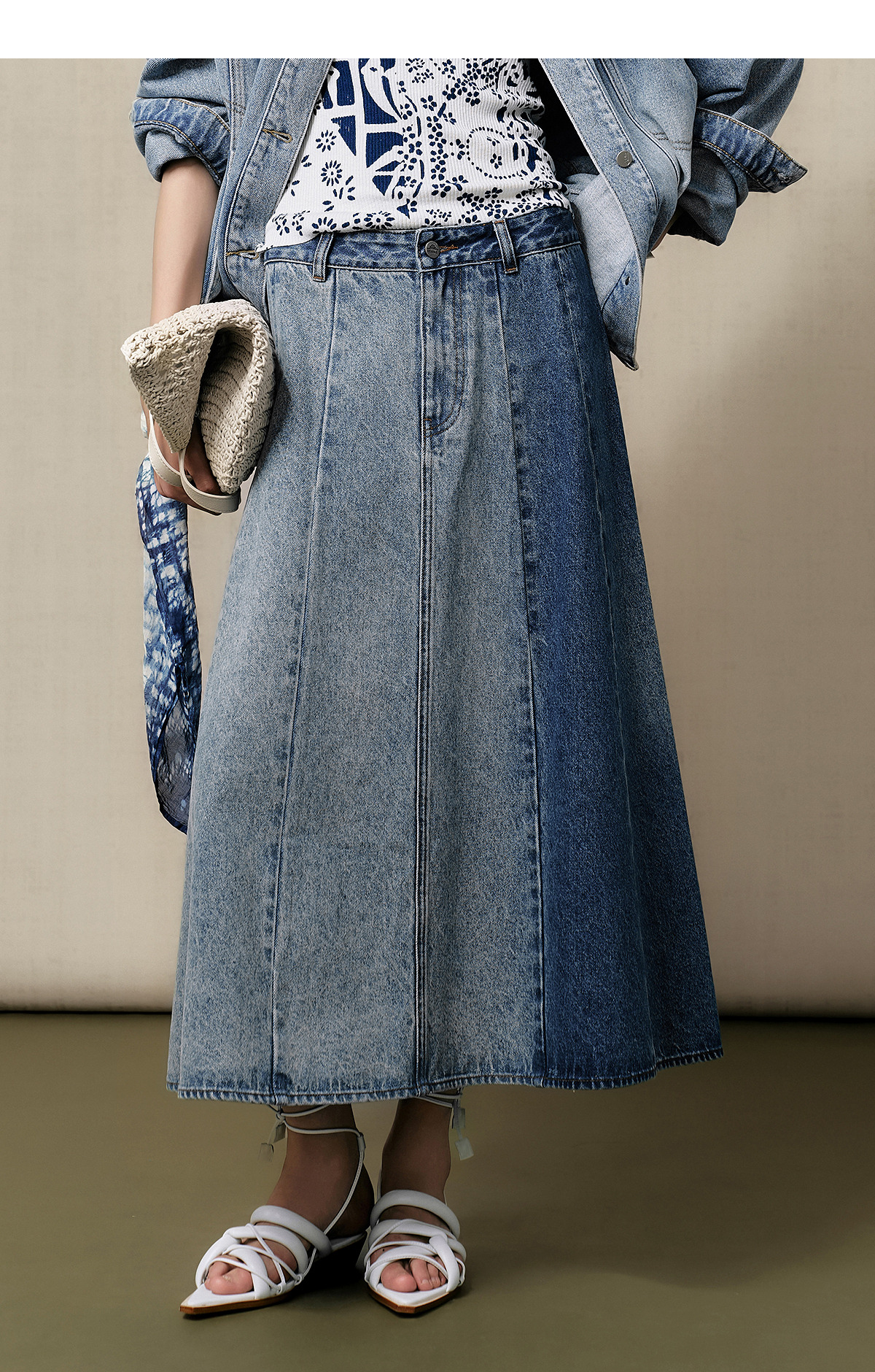 【林栖设计小店】(现货)【送方巾】【牛仔系列】渐变牛仔半裙配方巾百搭2025早秋新款裙子女G1653003