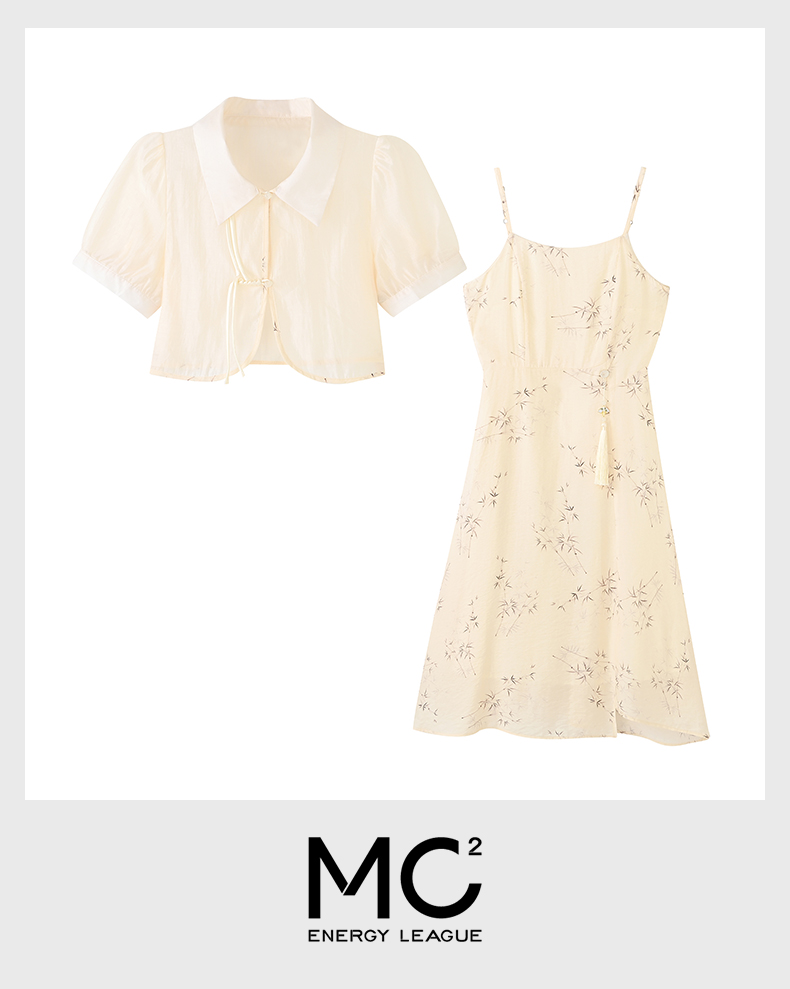 mc2方领蝴蝶印花连衣裙女装2024夏季新款收腰显瘦法式温柔风白色