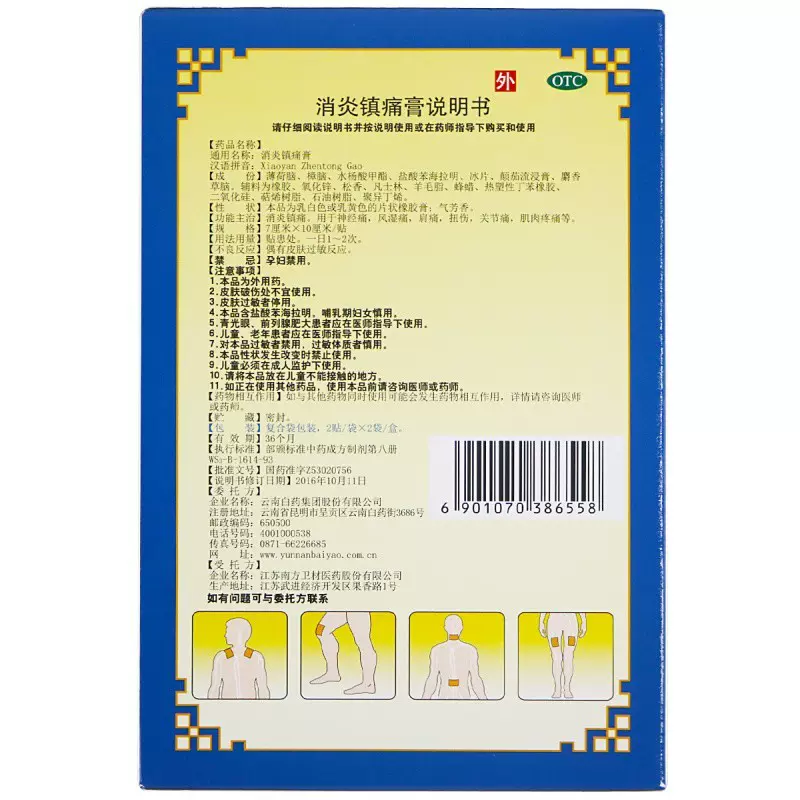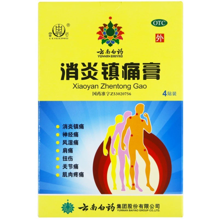 【官方正品】云南白药消炎镇痛膏4贴消炎镇痛用于神经痛风湿痛关节痛肌肉疼痛等