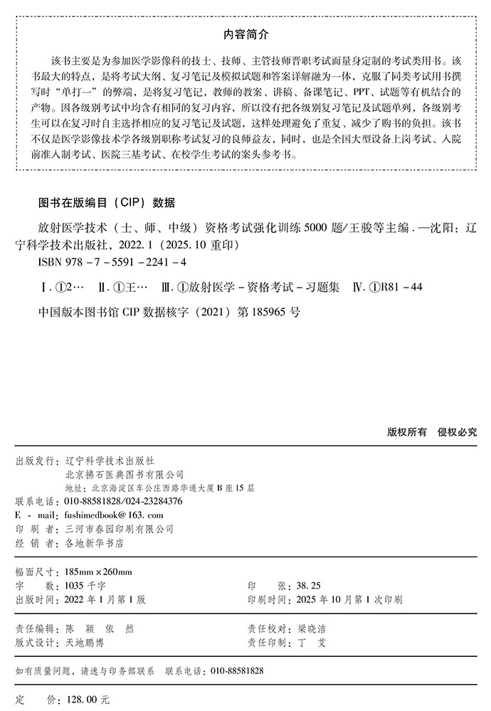 2026放射医学技术(士、师、中级)资格考试强化训练5000题 全国初中级卫生专业技术资格考试辅导丛书 王骏 等编 辽宁科学技术出版社