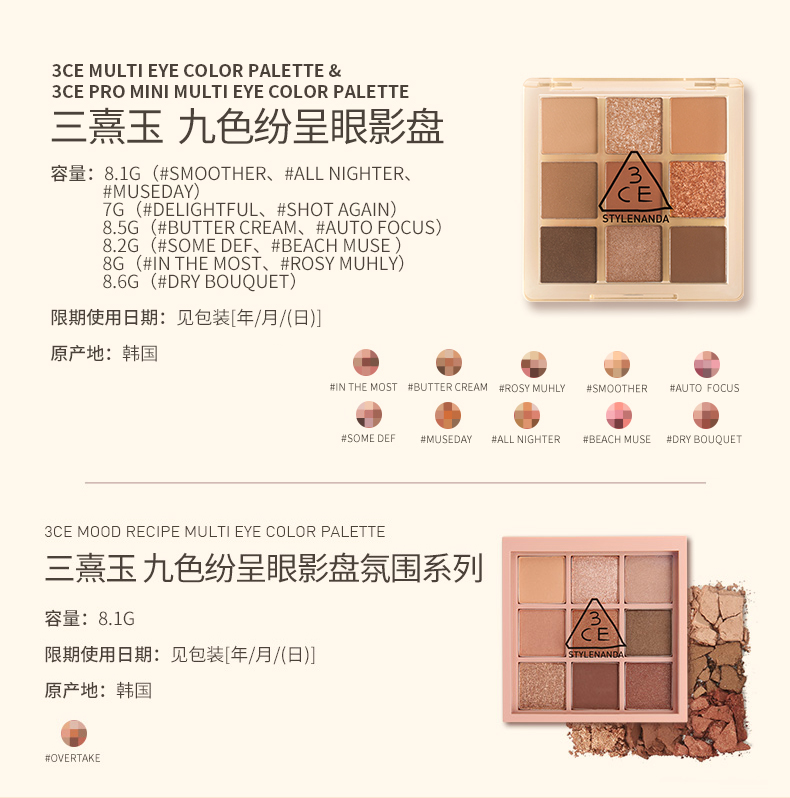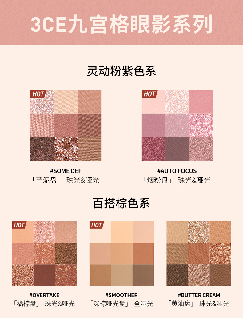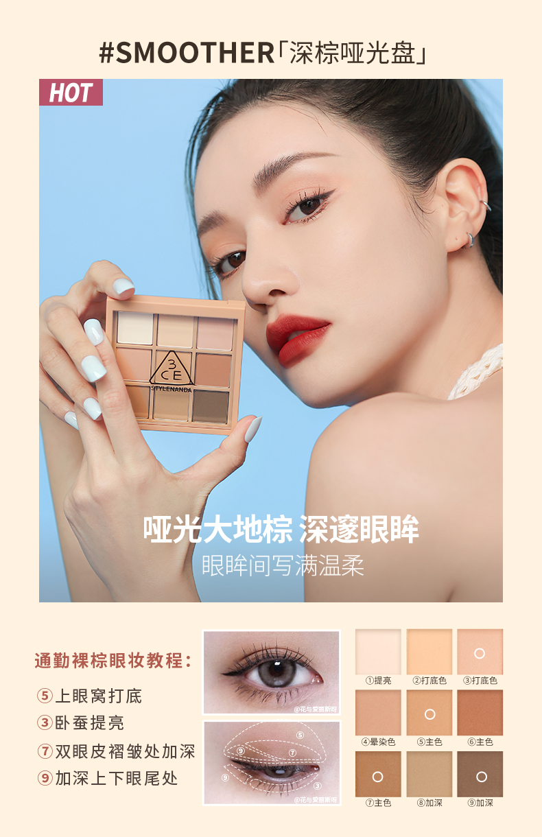 【保税仓】3CE三熹玉九宫格哑光眼影盘