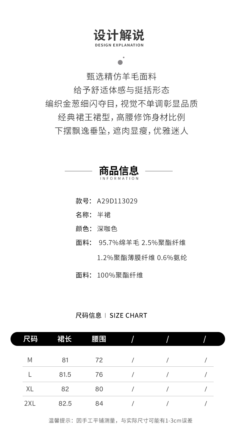 【商场同款】阿菁娜2024冬季新款精纺羊毛编织高腰A字裙A29D113029