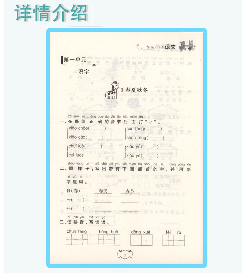 钟书金牌 课课练 部编版语文 1年级下册/一年级下语文第二学期 部编版教材配套上海小学教材教辅同步课后作业练习册 小学教辅