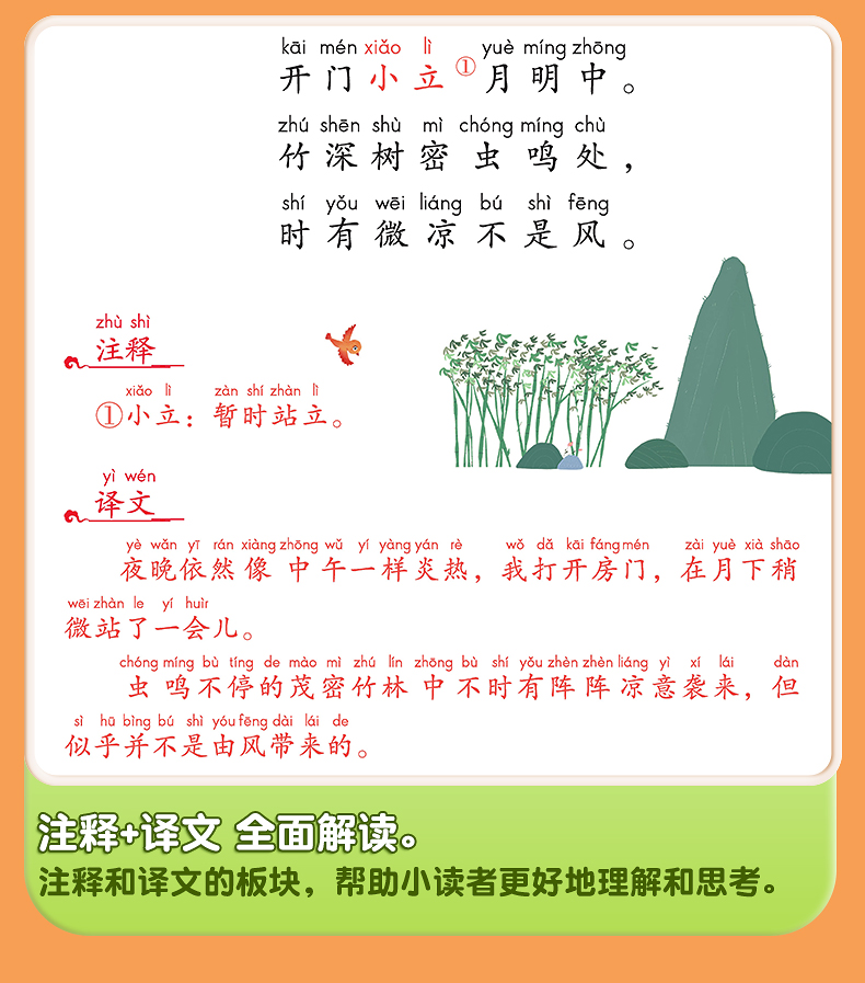 ✅低年级设置“字词积累”和“讲读指导”板块,并对重点标注,方便家长陪伴孩子共读时进行重点内容梳理。