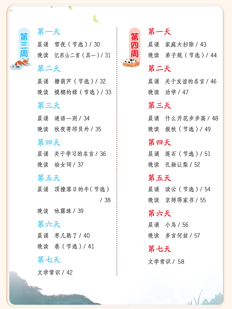 ✅3-4年级难度略有提升,新增了文言文板块,文章篇幅也较长,十分适合孩子进行过渡阶段的阅读;