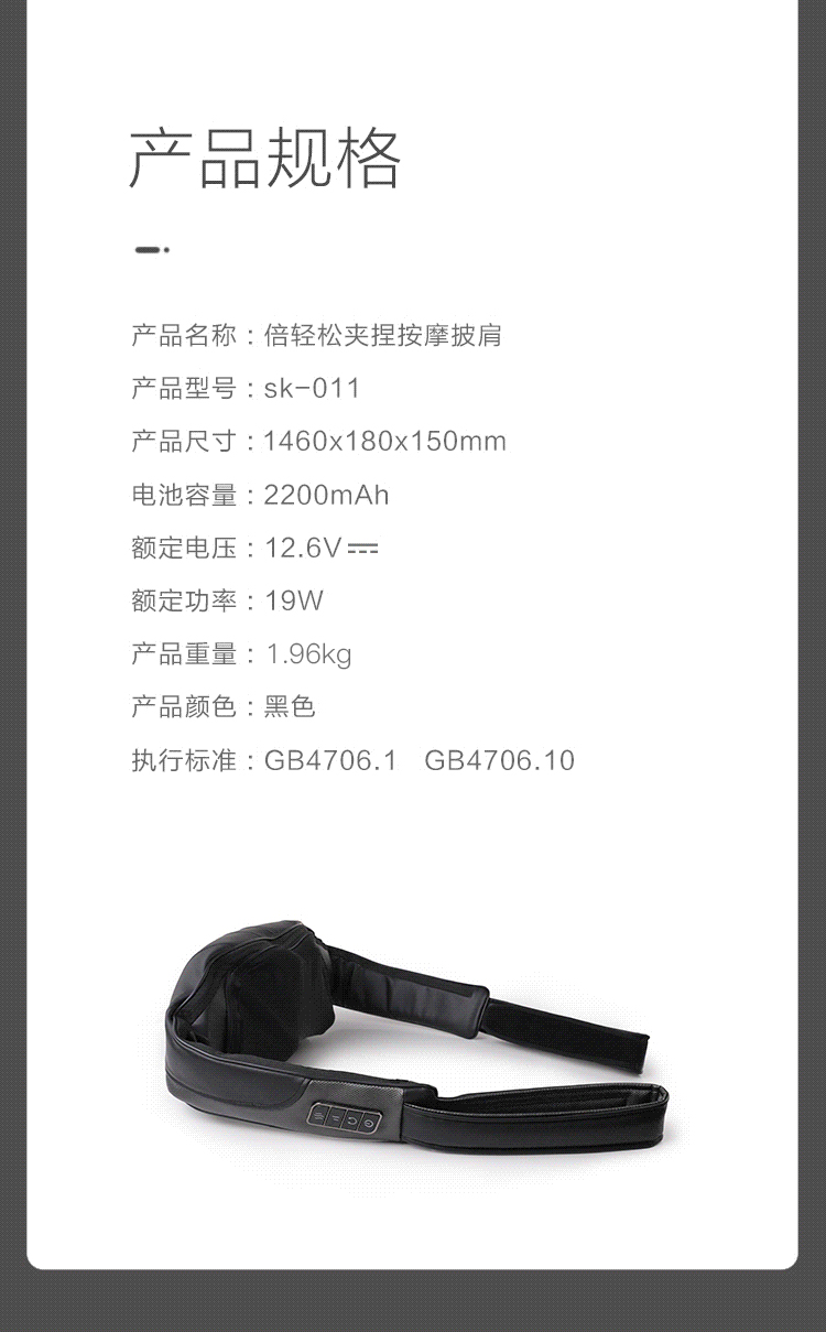 breo/倍轻松 颈椎按摩器无线夹捏披肩 sk-011